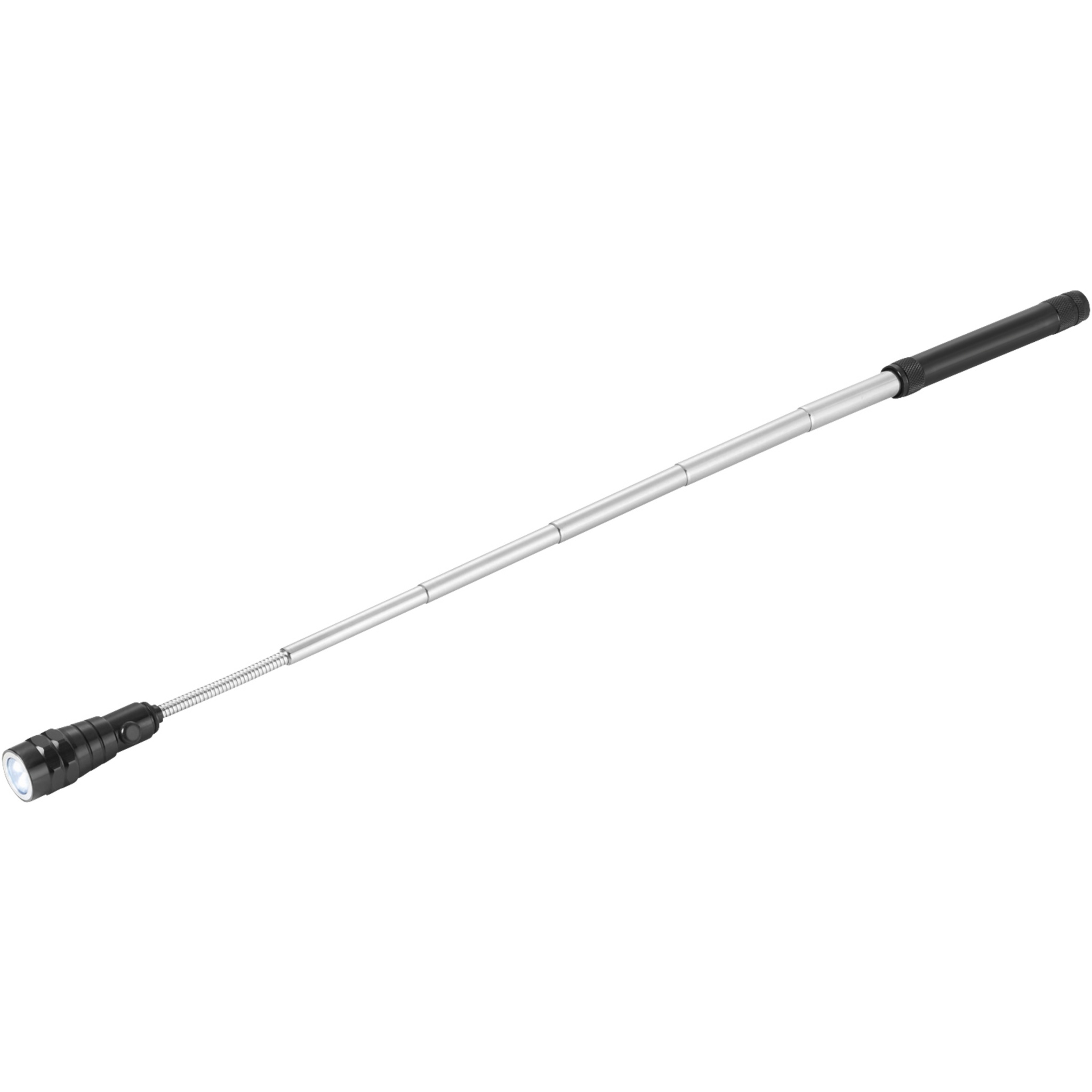 Tool with magnetic telescopic antenna including light to find small metal objects/ parts in places that are hard to reach or dark. 4 pieces LR44 batteries are included Packed in a STAC gift box.