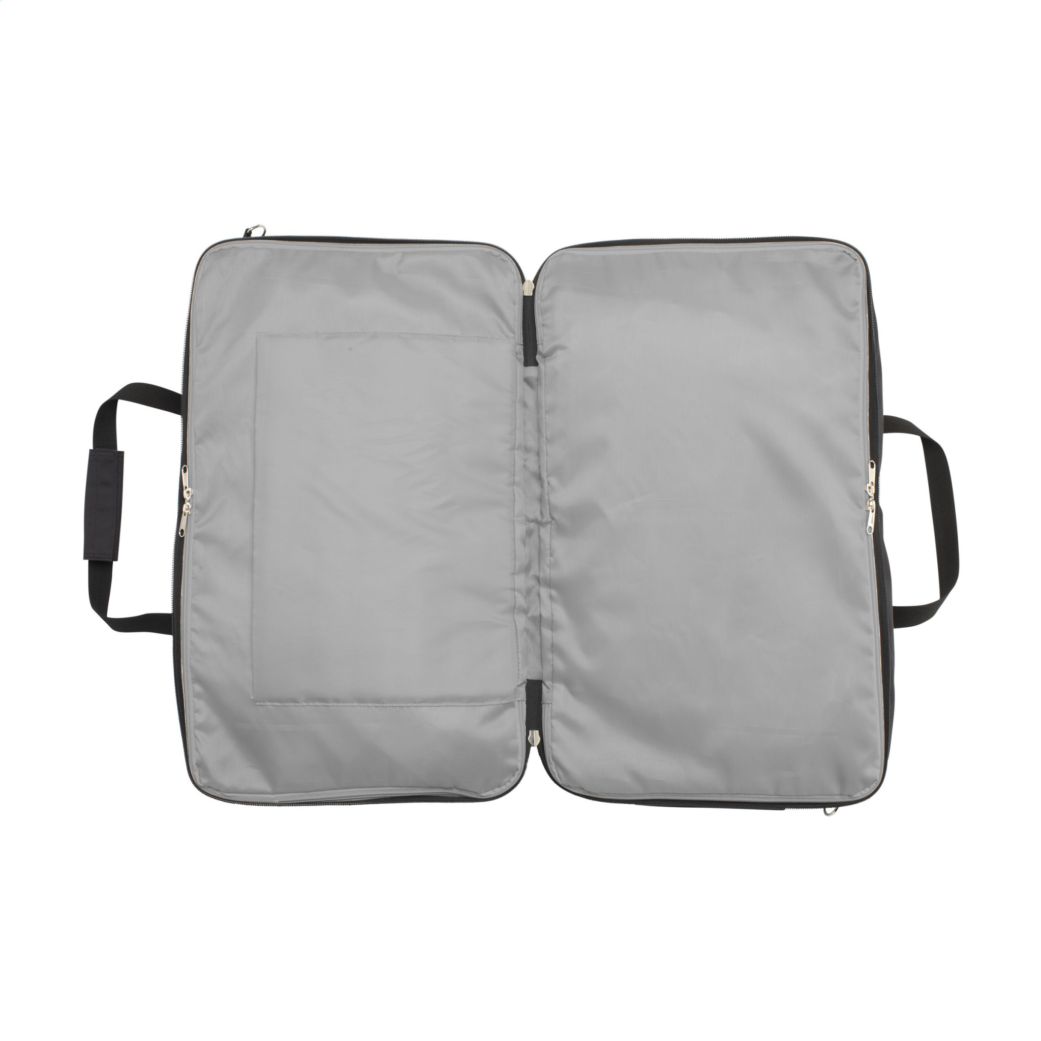 WoW! Practical weekend bag made from 600D RPET (made from recycled PET bottles). With a zipper, this bag can be opened out completely. Two separate, spacious zipper compartments provide extra storage. You can secure your luggage tightly with the internal packing straps. The bag has a separate laptop compartment for safely transporting a laptop up to 13 inches in size. In addition, the bag is nicely finished with an inner lining and equipped with two sturdy handles, protective studs and a detachable, adjustable shoulder strap. The outside of the bag is equipped with various storage compartments. Capacity approx. 40 litres.