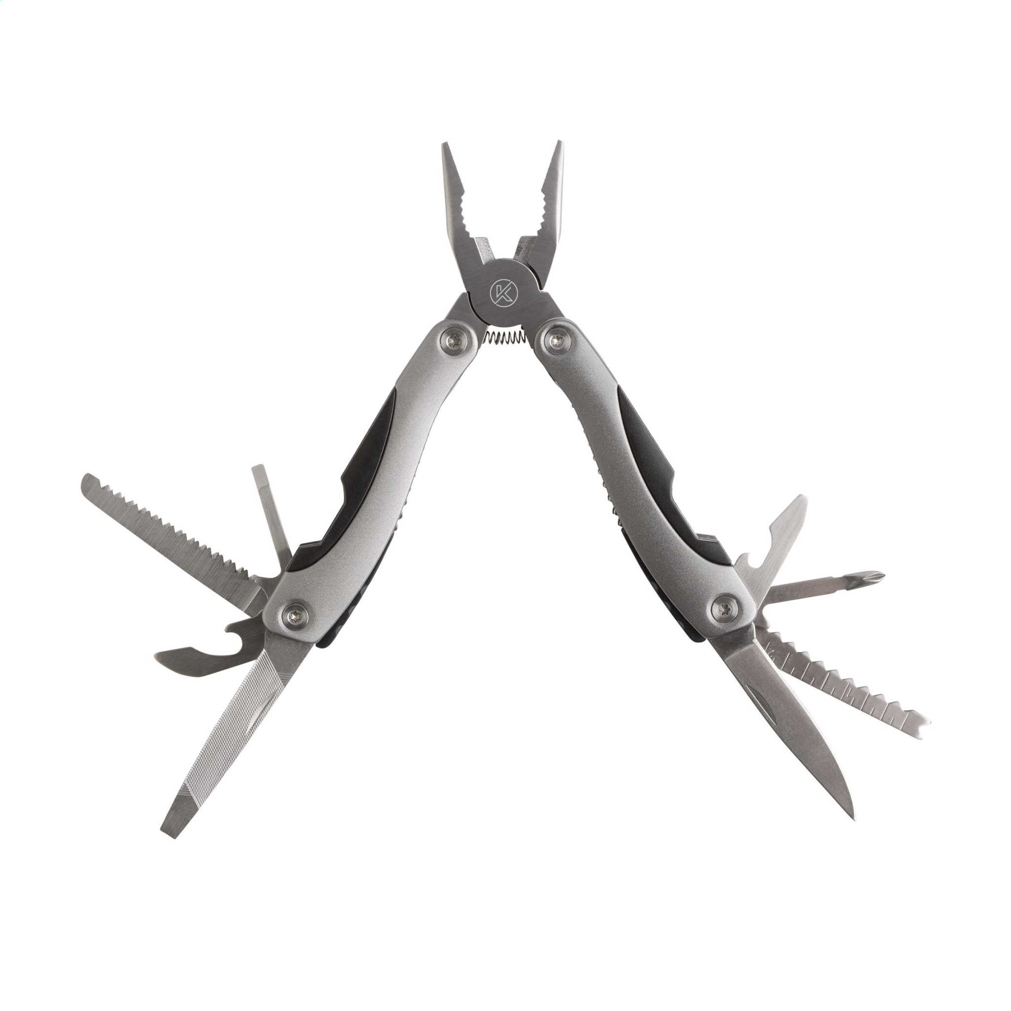 Functional and complete gift set: 9-piece stainless steel multi tool with 12 functions (tongs, wire stripper, saw, 2 screwdrivers, can opener, cap lifter, file, knife, phillips screwdriver, fish scraper, hook removal tool) and aluminium handle and metallic look. Aluminium flashlight (Ø 2.7 x 9 cm) with 9 bright white energy-efficient LED lights and detachable loop. batteries incl. Each set in box. Please note local rules may apply regarding the possession and/or carrying of knives or multitools in public. Items supplied as a set with, each set individually boxed.