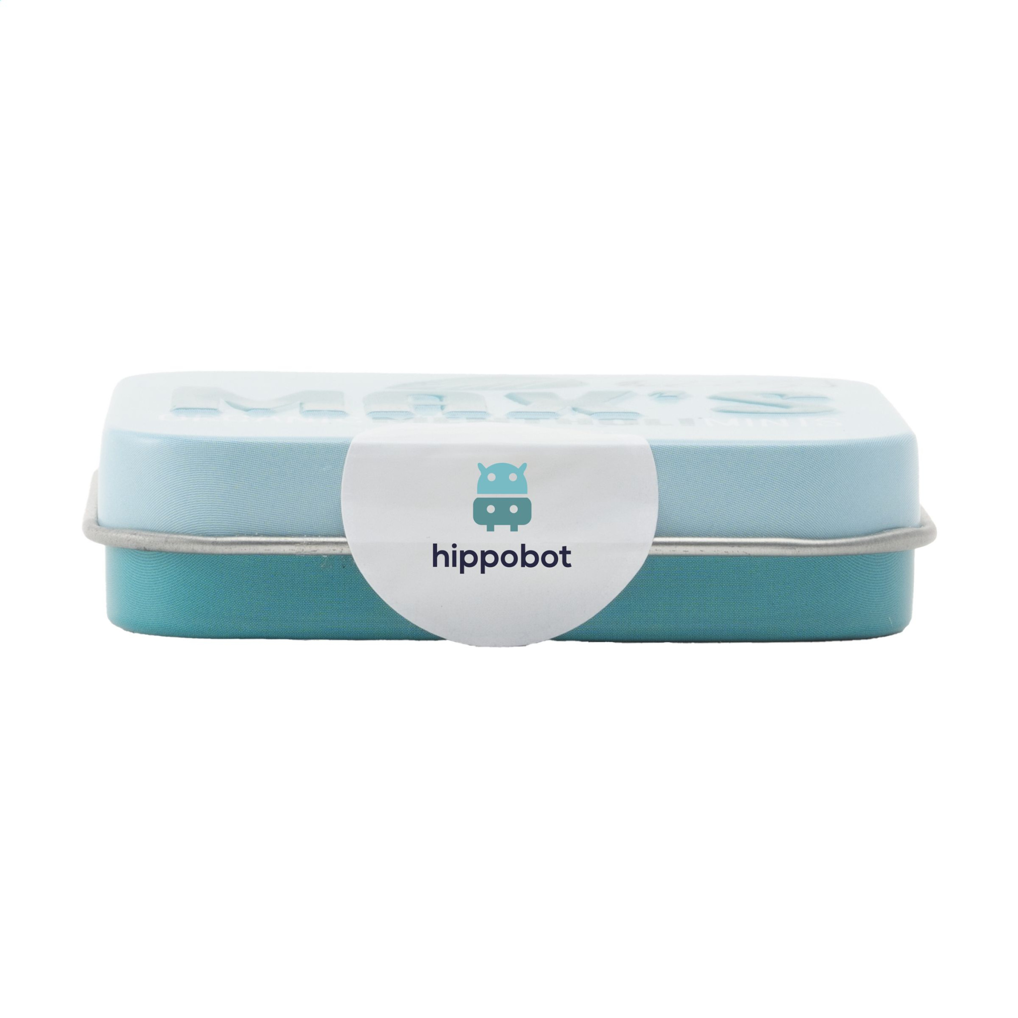 Recyclable, aluminium tin large enough to store approximately 58 tasty, organic menthol mints from the Max's Mints brand. These mints are made using organic sugar and natural seasonings but without gelatine. Organic, 100% natural and vegan product. This refillable tin has a striking design. A fresh and green giveaway in one. Made in Holland.