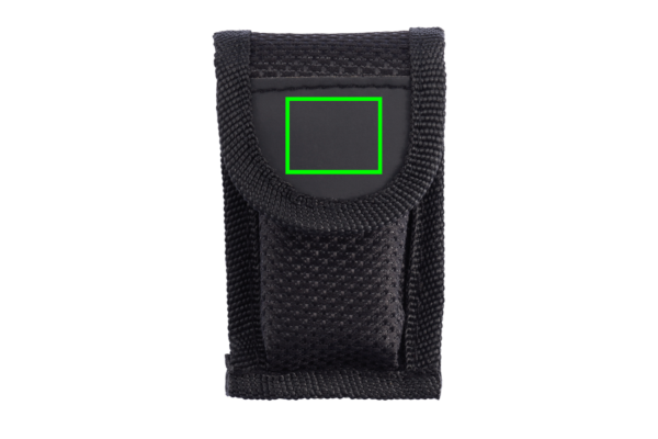 13 functions, stainless steel multitool with aluminium anodised handle. Including black pouch.
