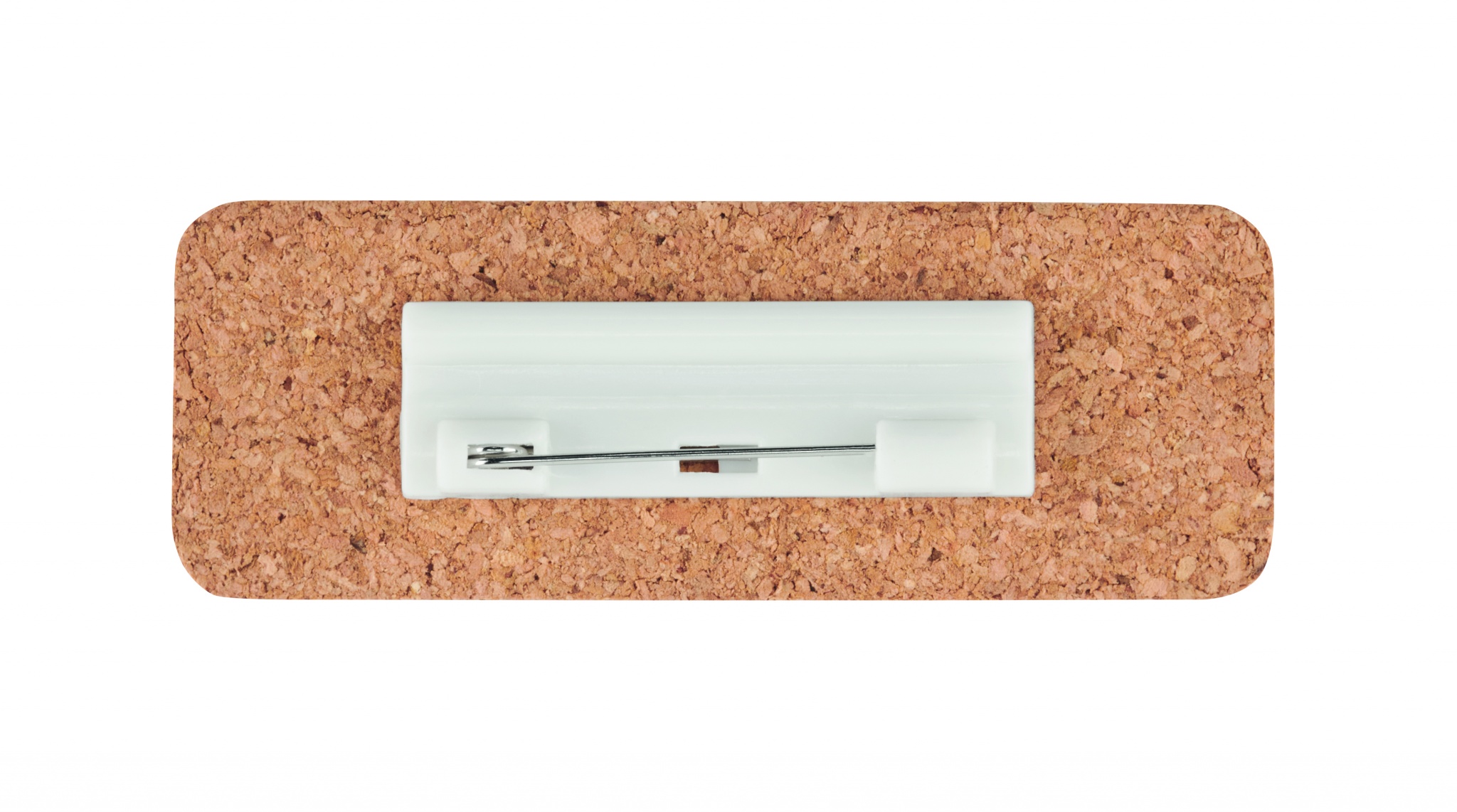 Cork name tag holder with needle buckle on the back. Cork is 100% natural material. Due to its structural nature and surface porosity the final print result per item may have deviations.