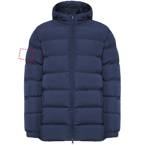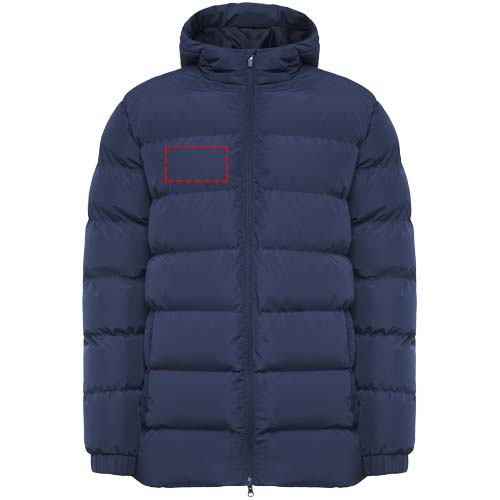 Padded sports parka. Hood with peak. Front zip with matching puller and chin protector. Elastic cuffs. Two side pockets with zip. Interior left chest pocket. Inner access for reprocessing. Removable label. Waterproof. Wind-proof.