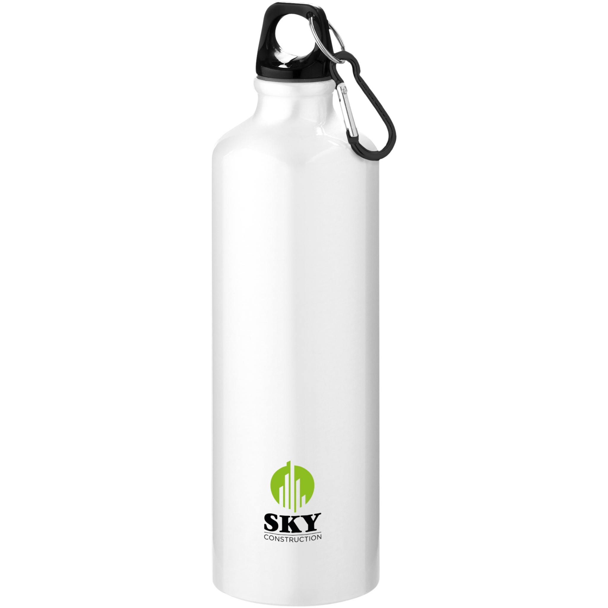 Staying hydrated at all times is possible with this durable yet lightweight 770 ml water bottle made from RCS certified recycled aluminium. It is the perfect companion while exercising, on day trips or at the office. The single wall Oregon bottle has a twist-on lid and offers plenty of space to add any kind of logo. Clip the attached carabiner (not suitable for climbing) securely to a bag to avoid losing it. BPA Free and tested and approved under German Food Safe Legislation (LFGB) and for phthalates content under REACH. The 100% recycled aluminium makes up for 87% of the bottle, and the remaining part is plastic.