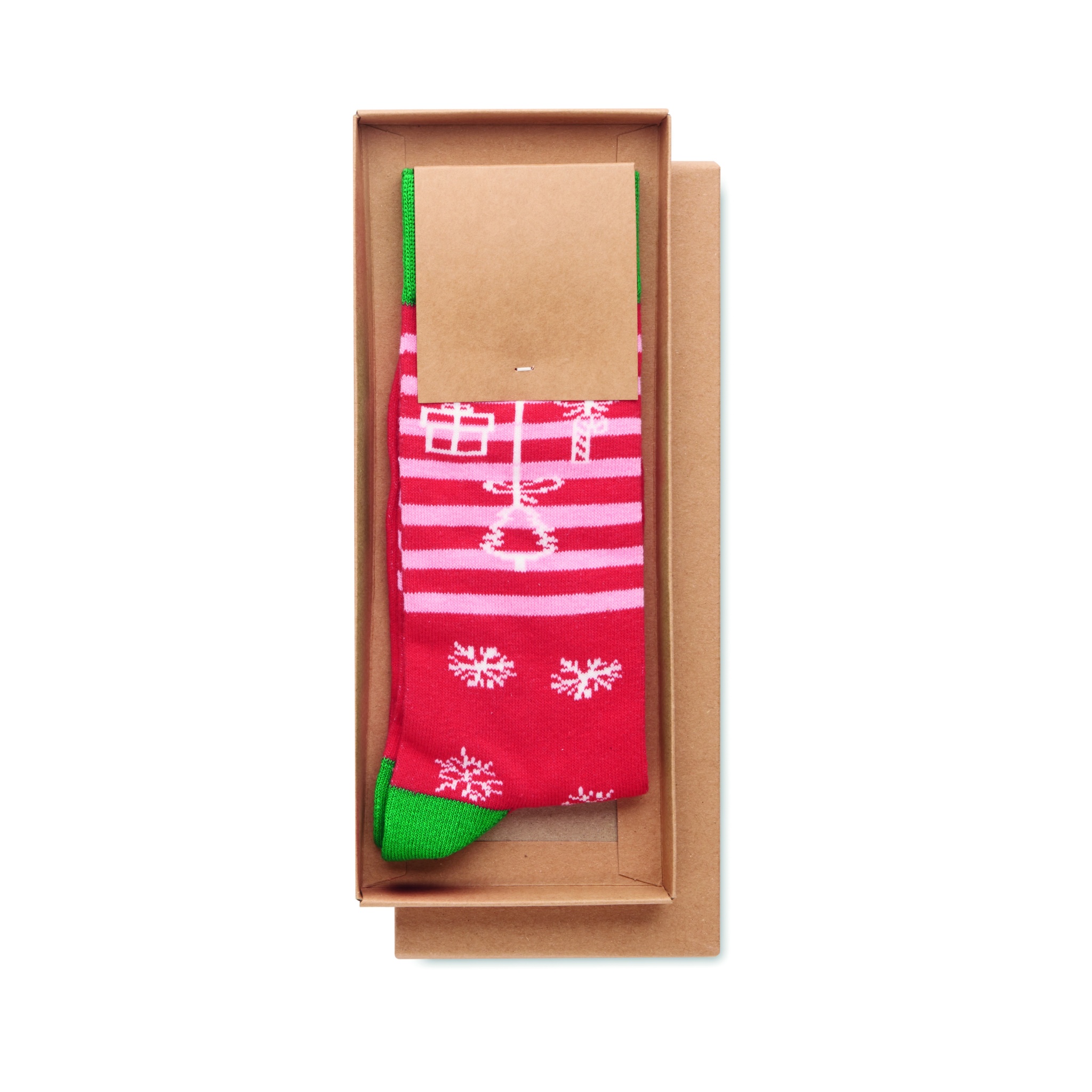 Pair of seasonal socks in 75% cotton, 23% RPET polyester and 2% spandex. Presented in giftbox. Size M = 38-42.