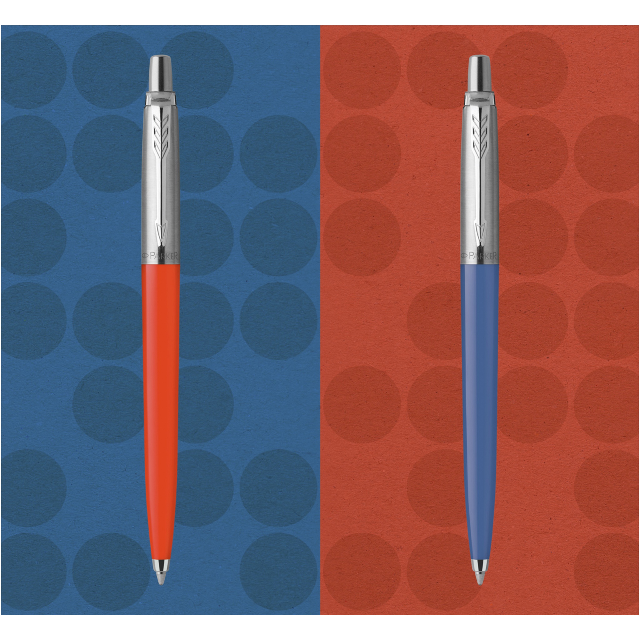 The Parker icon, Jotter, is the preferred choice for active writers who need pens wherever they go. Now this perfect gift comes in a fun, Parker cracker gift box. Delivered with patented Quick Flow ballpoint refill. Exclusive design.