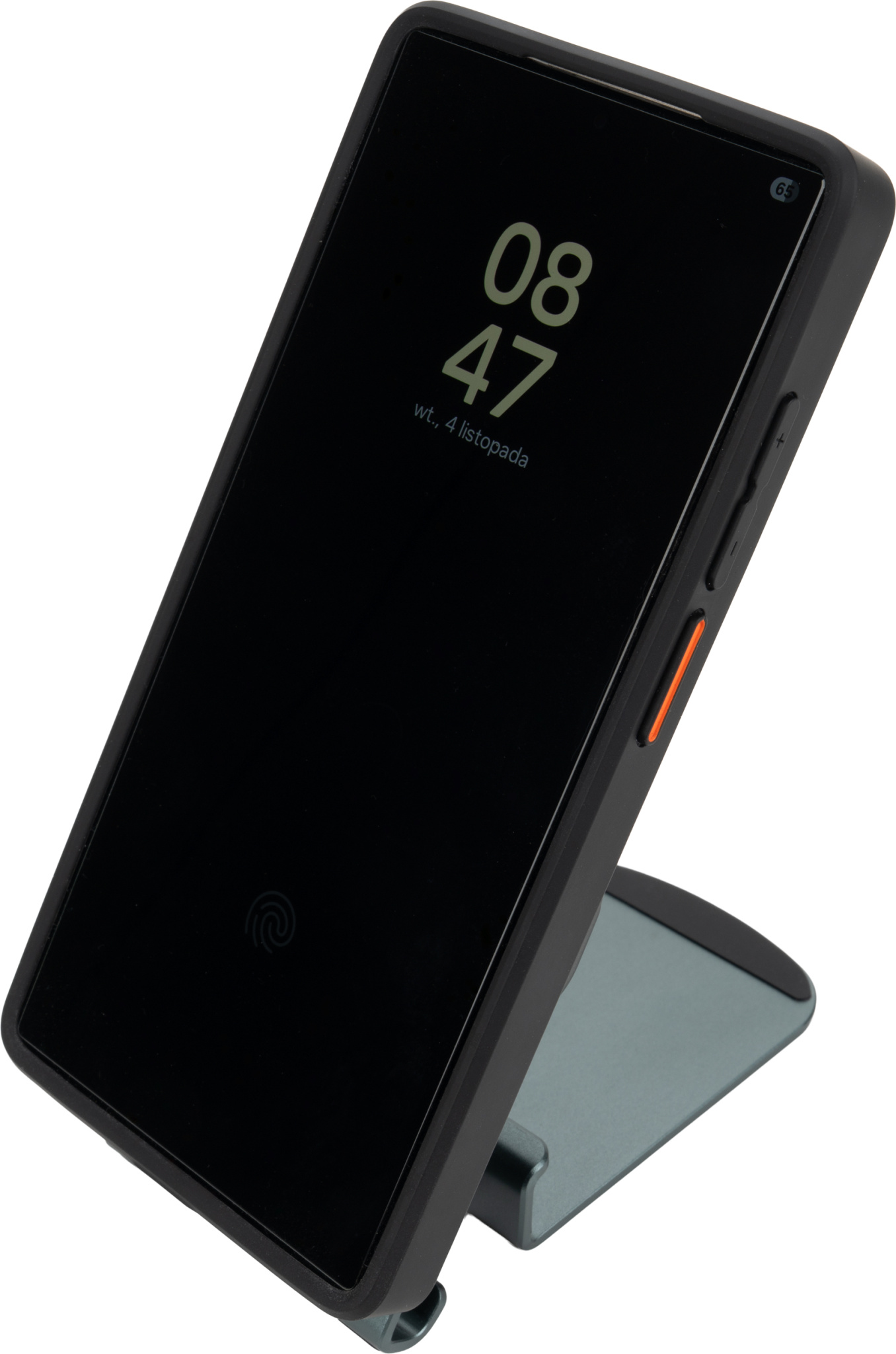 A universal wireless charger that also functions as a practical phone stand. The device is compatible with Apple products such as the iPhone, AirPods, and Apple Watch. It offers a wide range of power outputs (15W, 10W, 7.5W, 5W), adapting to the needs of the device being charged, and is powered by a modern Type-C interface (input: 5V/9V/12V – 2A max.). The construction is made of a durable combination of aluminum alloy, PC, and ABS, which ensures durability and an elegant appearance. The set includes the charger, a one-meter Type-C fast charging cable, and a neutral gift box with dimensions of 7,2 × 2,2 × 17 cm.