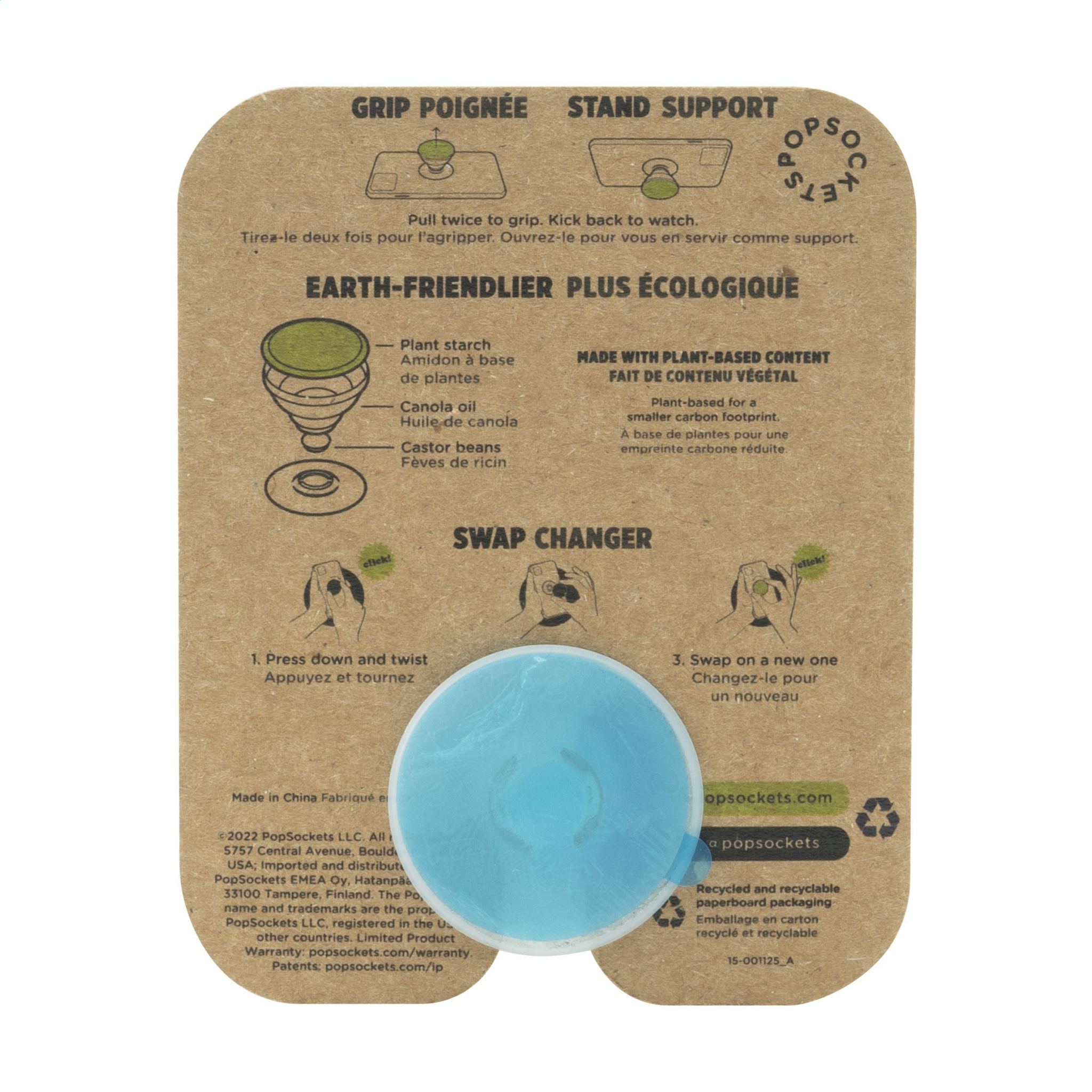 Convenient and multifunctional phone accessory. Developed with 35% plant-based materials, including corn starch, canola oil and castor beans. Attach this item to the back of your phone with the 3M adhesive strip and use the handy functions: comfortable grip for better hold, functional stand and selfie-holder. It has 2 different pop-up positions and it’s flexible so you can position the smartphone any way you like. Suitable for all commonly used types of smartphones, iPhones and other devices. Read the supplied instructions for optimal use and maintenance of the PopSocket®. Extra info regarding delivery time: 60 - 500 units: 1 week, 500 - 1,500 units: 2 weeks. More than 1,500 units, price and delivery time upon request. PopSockets® are only supplied with print. A card (85 x 108 mm) made of kraft paper is included with the PopSocket as standard. This cannot be printed in full colour. If you would like to have a card printed, this is only possible on a white card.