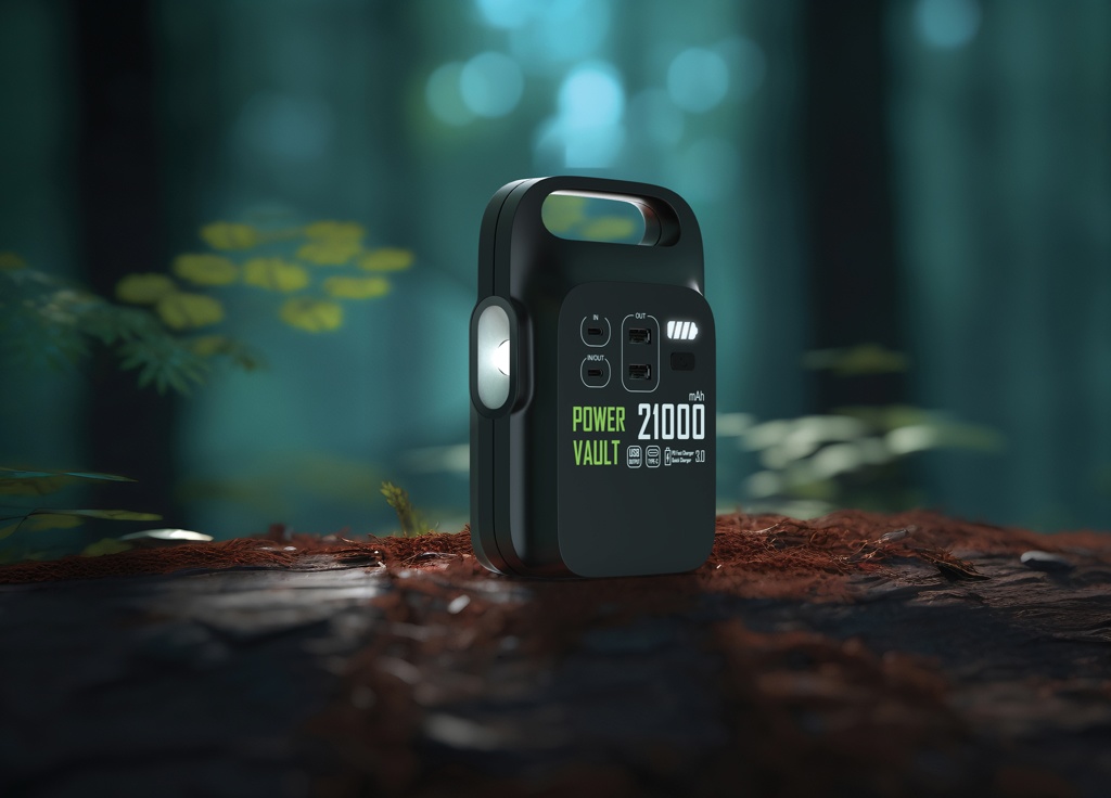 21.000 mAh power station made with RCS certified recycled ABS. Total recycled content: 25% based on total item weight. RCS certification ensures a completely certified supply chain of the recycled materials. Power vault is perfect for the outdoors, travelling or to have at home in case of emergencies. The 21000 mAh battery can charge multiple items at once through the 3 output ports ( 2x USB A, 1X type C) With integrated 120 lumen LED light that can run for up to 40 hours in case of an emergency and also has an SOS mode. With emergency crank in case the battery runs completely empty and more power is needed. Type-C input: 5V/2.4A; 9V/2A;12V/1.5A. Type-C output: 5V/2.4A; 9V/2A; 12V/1.5A. USB-A outputs: 5V/2.4A; 9V/2A; 12V/1.5A. IPX 5 Waterproof. Perfect to be charged by mobile solar panels (not included)