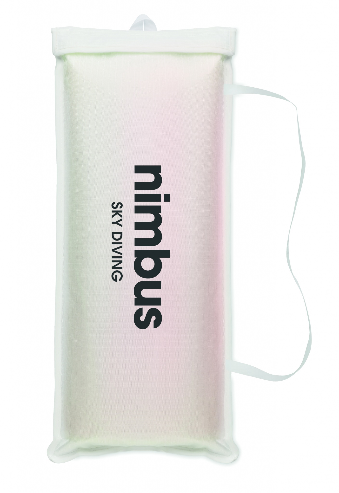 Rainbow mattress kite in 210T Ripstop polyester with 2 handles. Presented in pouch.