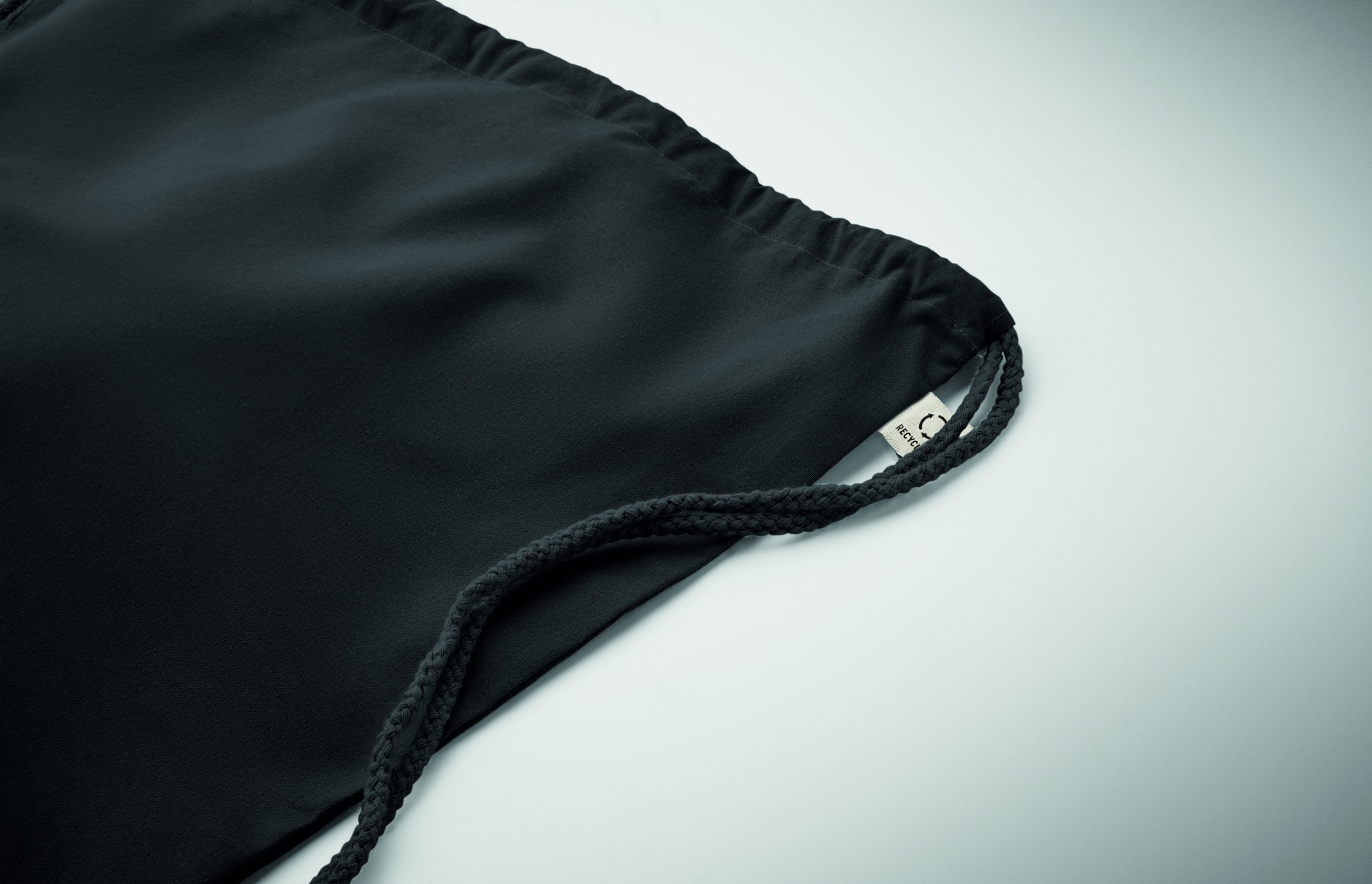 Drawstring bag in recycled pre-consumer cotton (70 %) and RPET (30%) 140 gr/m².