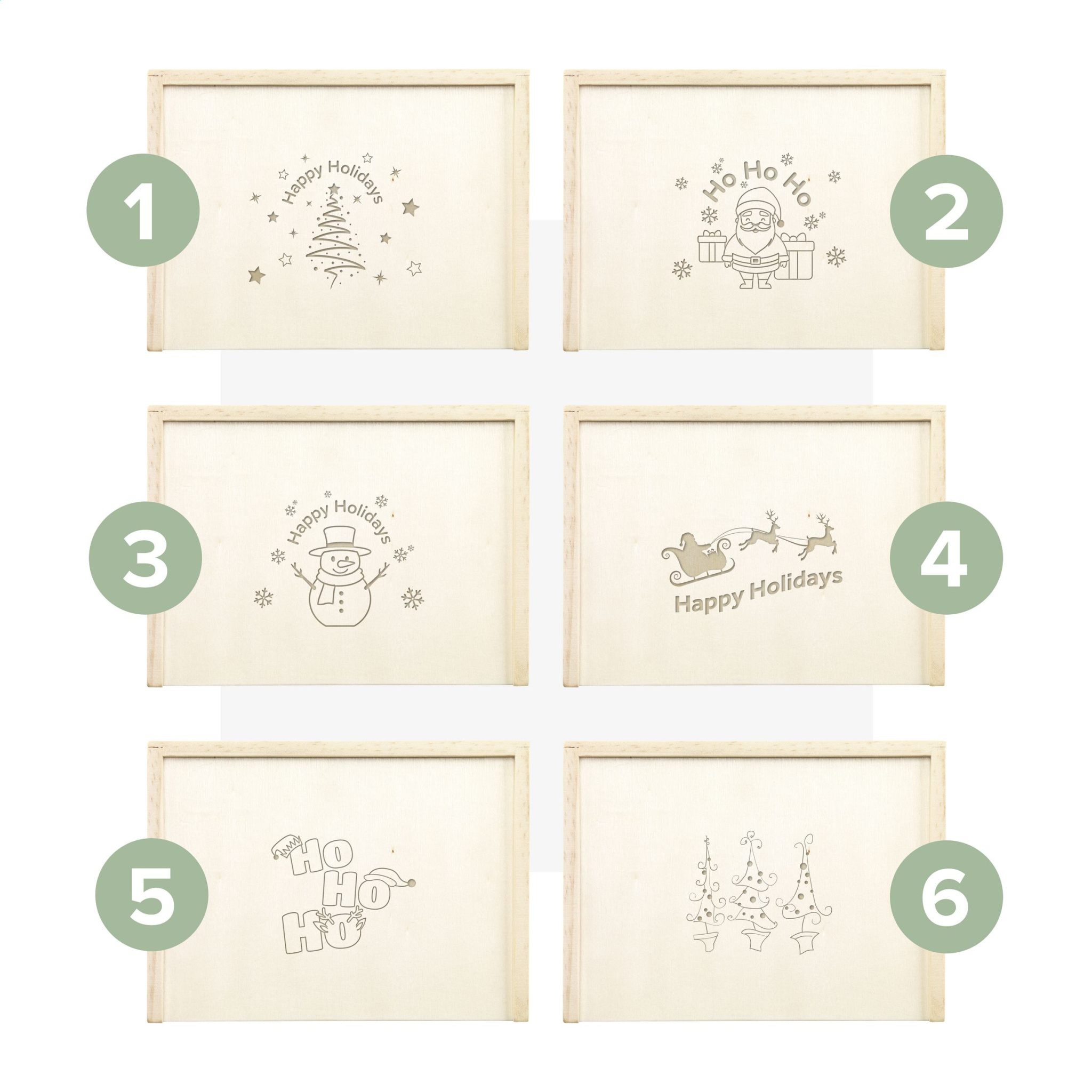 WoW! Two decks of playing cards made from high-quality recycled kraft paper (250 g/m²). This game consists of 52 playing cards and 2 jokers. Stored in a box made from recycled cardboard. The back of these cards all have the same standard image. These decks of cards are supplied in a pinewood storage box with a sliding lid. - This product is printed with a standard Christmas design. Choice of 6 different designs as shown in the images. It is not possible to customize a design.