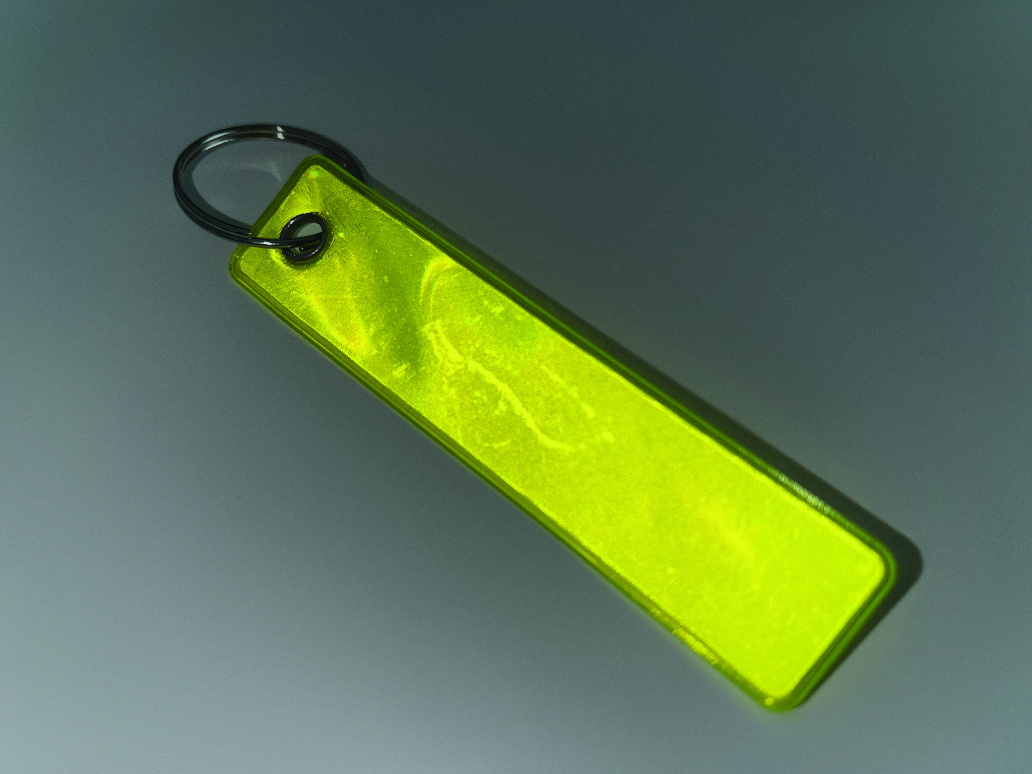 Reflective remove before flight key ring in PVC. For promotional use only.