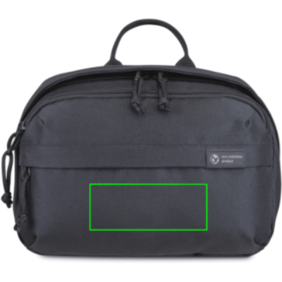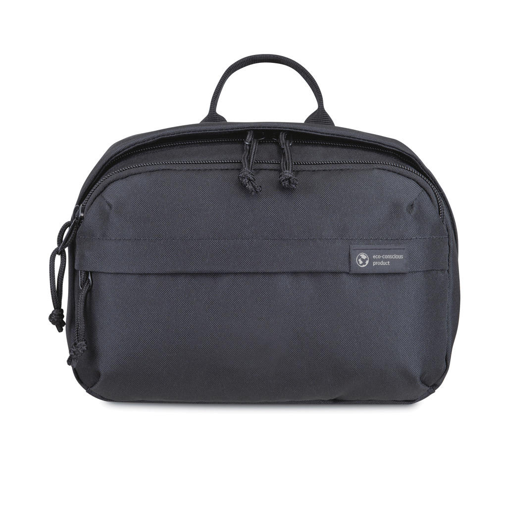 A modern and sustainable update to your go-to toiletry bag using recycled fabric and webbing made from plastic bottles. Front zippered pockets for storing travel essentials. Large zippered main compartment with interior pockets to keep your toiletries organised. Top grab handle. Includes AWARE™ Virtual ID & Product passport, which delivers an indisputable way to track and validate textile composition impact from origin to consumer. To access, scan the QR code located inside the product or visit wearaware.co to learn more. Available across both sides of the Atlantic. This item is also offered by Gemline for customers in the US and Canada.