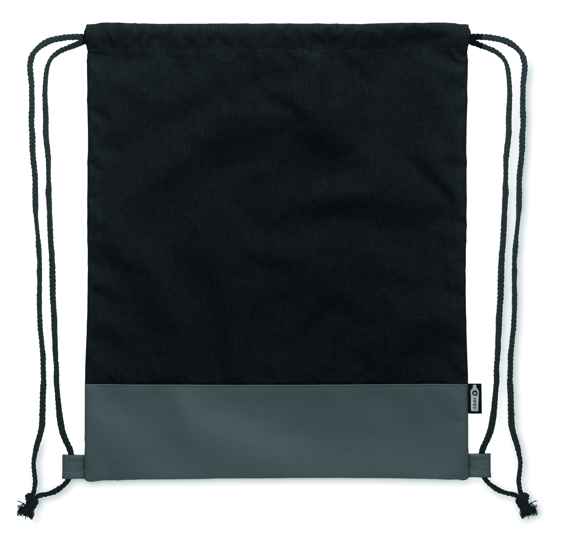 Drawstring bag in 2 tone 300D RPET polyester with soft PU detail and polycotton cord.
