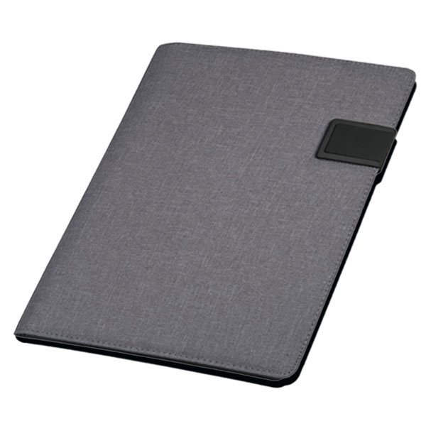 DIN A4 folder with various compartments and loops, mobile phone pocket, a writing pad (20 pages) and magnetic closure. We will transfer print your logo the front.