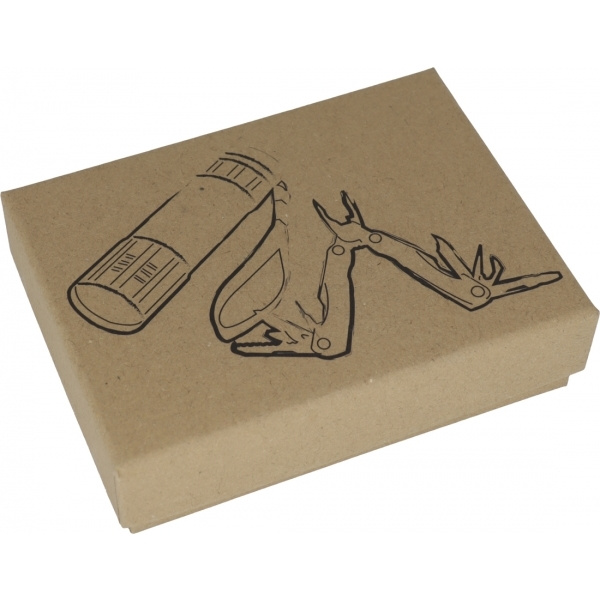 Perfect duo! Captivate your customers with this nice set consisting of aluminum torch with 9 LEDs and multi-functional pliers. The pliers also provide a nail file, can opener, Phillips screwdriver and two different slotted screwdrivers, knife, saw knife, bottle opener and pricker. We will engrave your logo on the torch. Three AAA batteries are included in delivery. Single-packed in box.