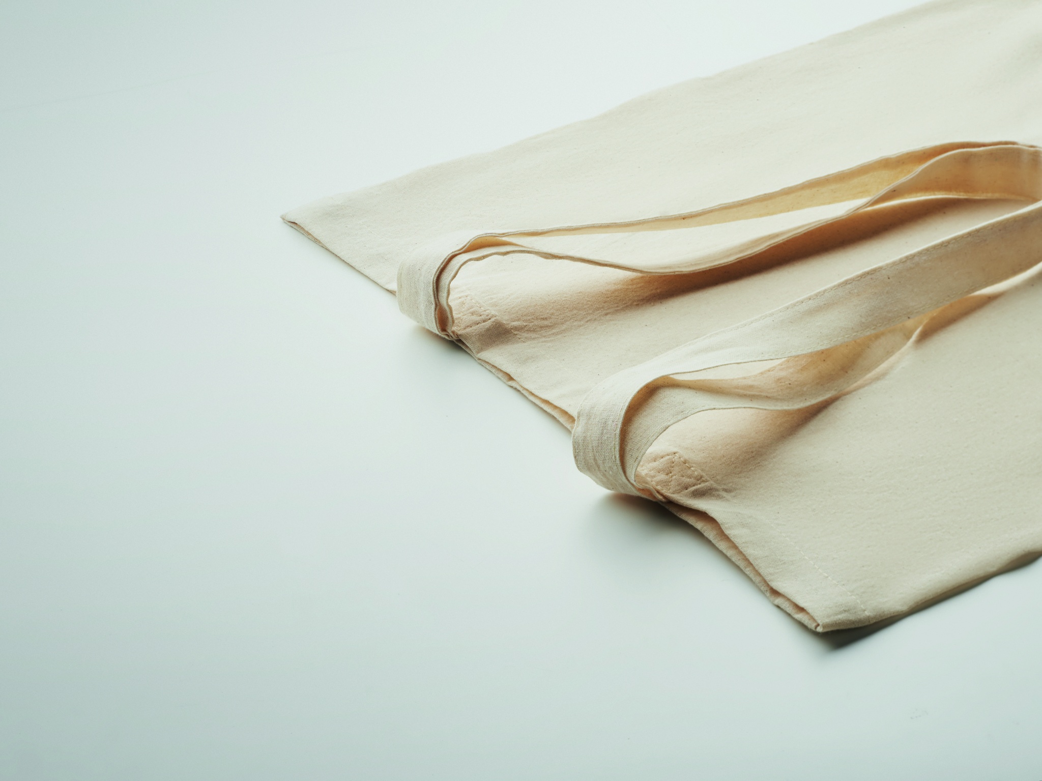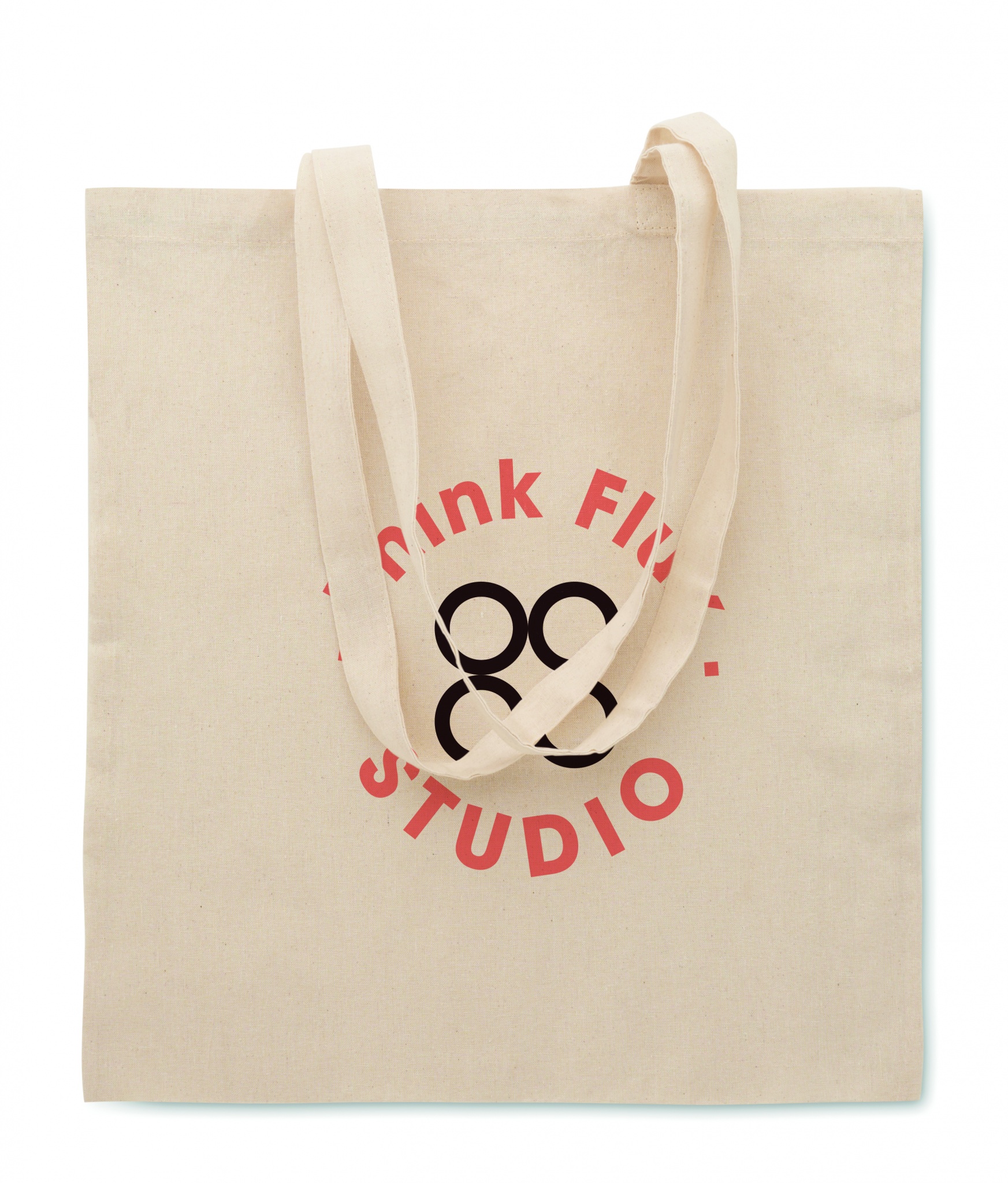 Polycotton (70% cotton and 30% polyester) shopping bag with long handles. 130 gr/m².