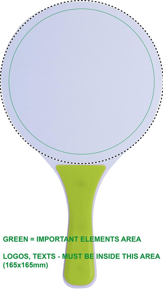 Small beach tennis set consisting of 2 MDF rackets and 1 soft ball.