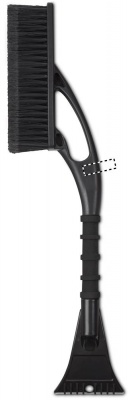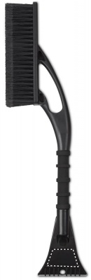 Snow brush in PET with soft finish hair on the tips with integrated ice scraper in ABS and foam grip handle.