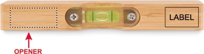 Spirit level in Bamboo with built in bottle-opener. Bamboo is a natural product, there may be slight variations in colour and size per item, which can affect the final decoration outcome.