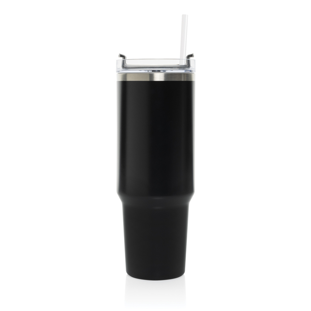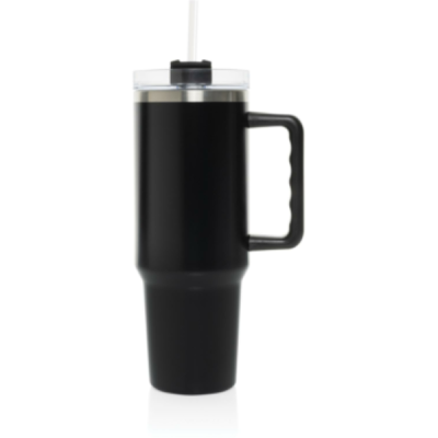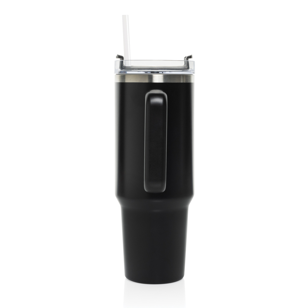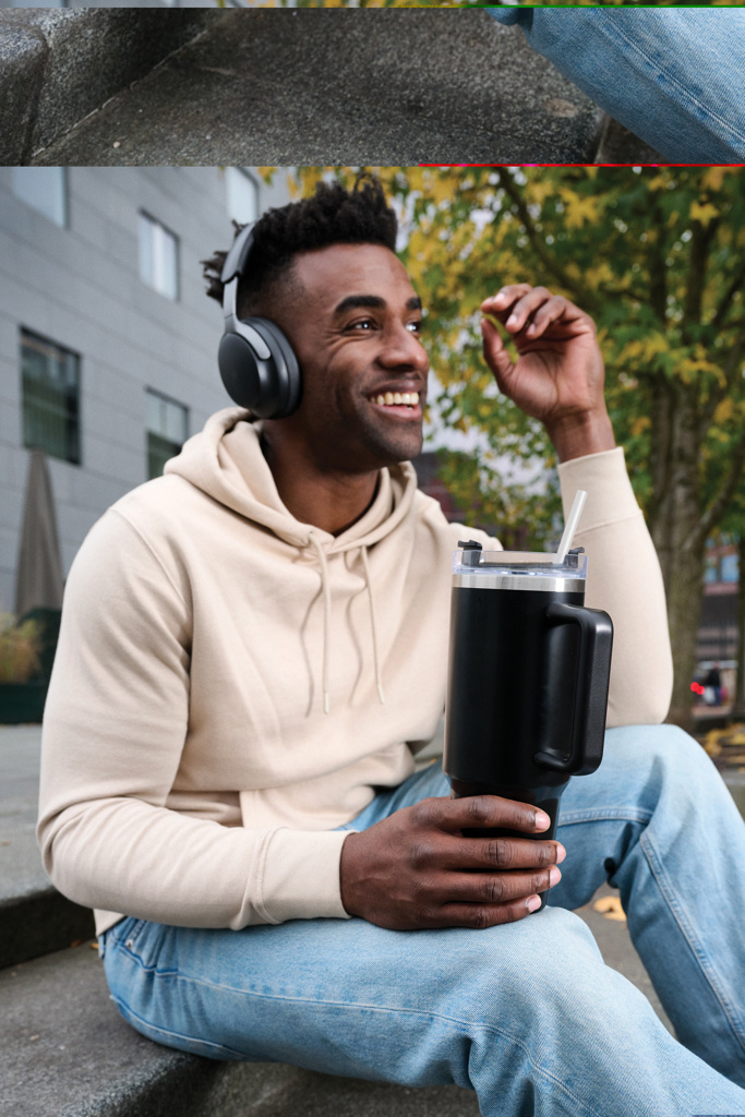 Meet Stadley, the ultimate 1200 ml tumbler designed for those who need a little extra. Its comfort-grip handle and slim base make it easy to carry and fit into most cup holders, keeping you hydrated on the go. Outside made from durable recycled stainless steel, Stadley’s double-walled, vacuum-insulated body keeps drinks at the perfect temperature. It features a spill-proof lid with a dual function for sipping or using the included recycled steel straw with a silicone tip. RCS-certified, with 29% recycled content, and BPA-free. Perfectly practical and lower impact, we recommend handwashing.Bulk packed.