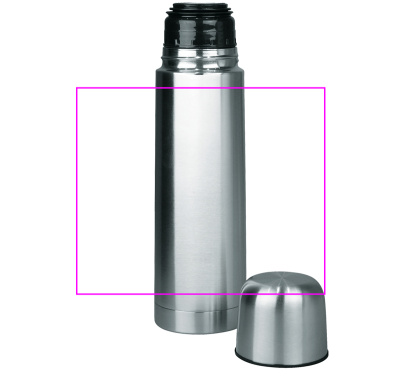 Double wall stainless steel isolating flask with 0,5l content. The snap closure allows fast pouring into the cup. Your logo will be laser engraved on the flask. Each isolating flask is packed in a single cardboard box.