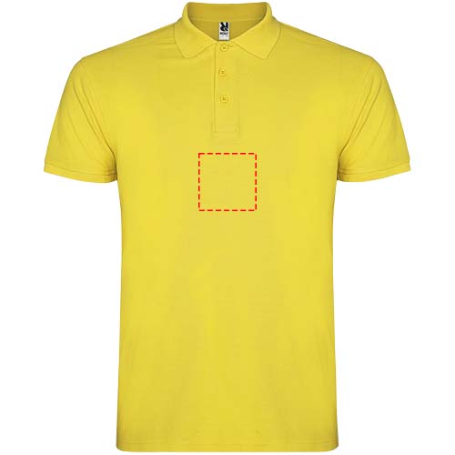Short-sleeve polo shirt for men. Reinforced covered seams in interior collar. 1x1 ribbed cuffs and collar. Side seams. 3-button placket and side slits. Optional pocket. Removable label. The model is 185 cm and is wearing size L.