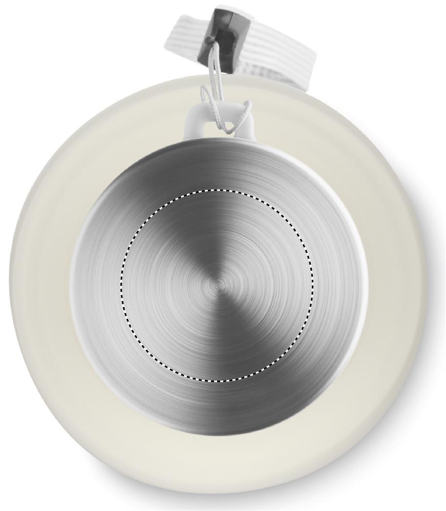 Glass bottle with special coating for sublimation. It has a stainless steel lid and hanging strap. Capacity: 500 ml.