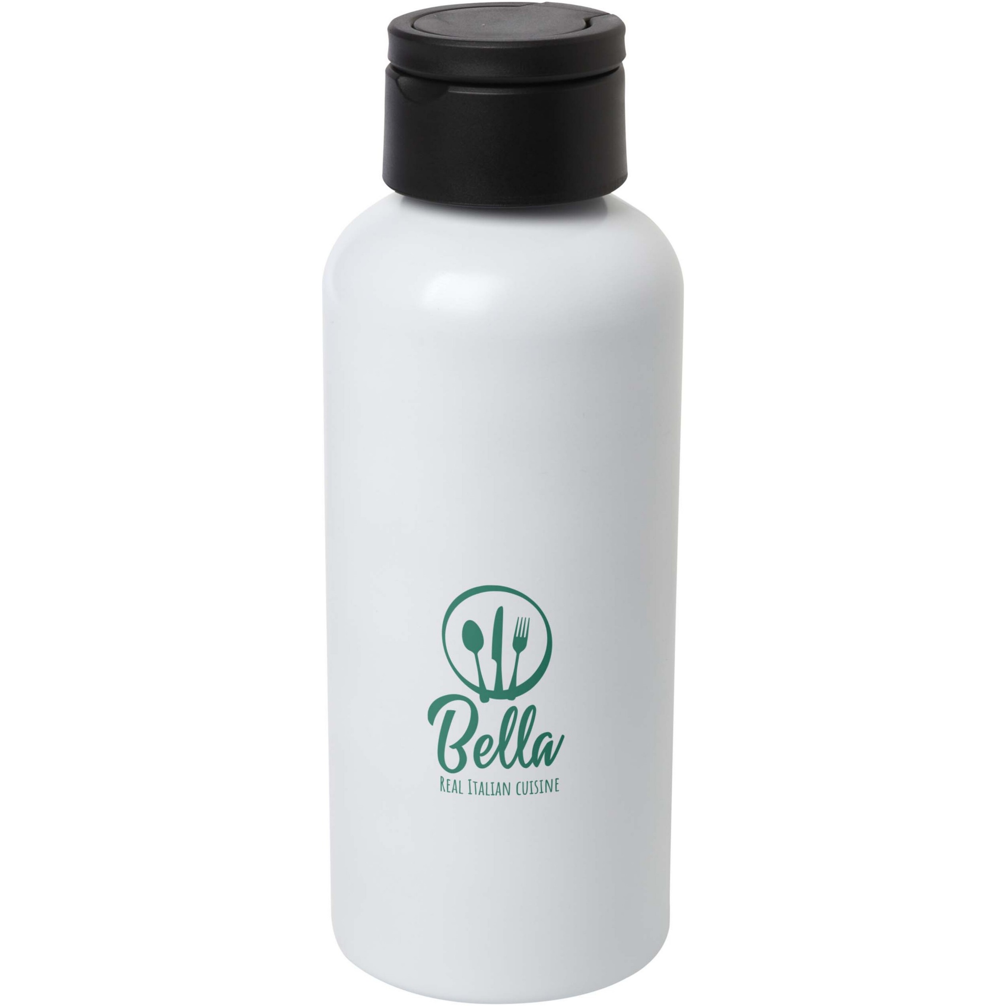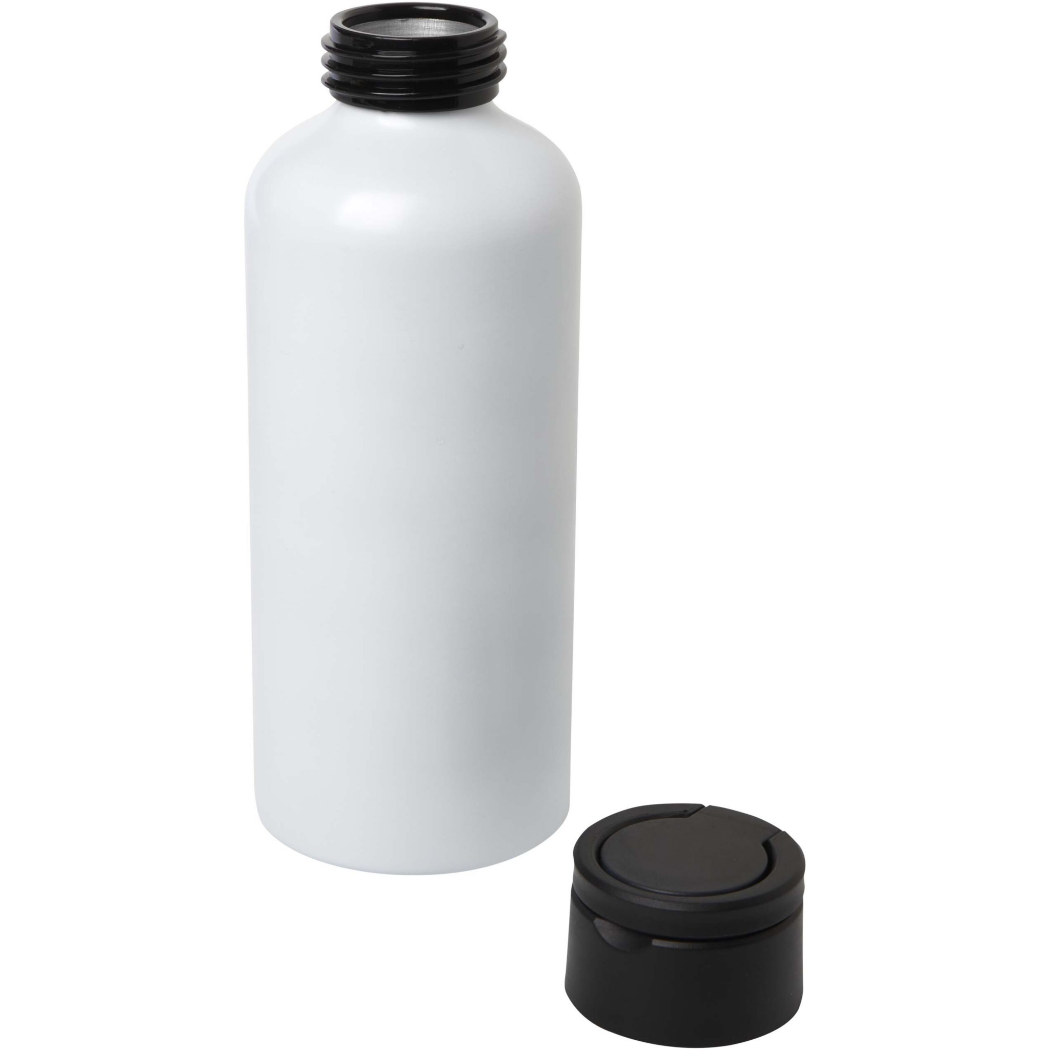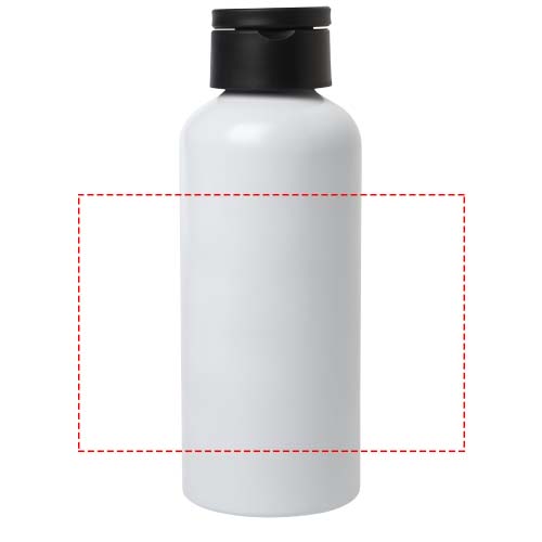 RCS certified recycled aluminium water bottle with a sleek design. Features a recycled plastic lid that has a discrete carry loop. Lightweight and easy to carry. Volume capacity: 600 ml.