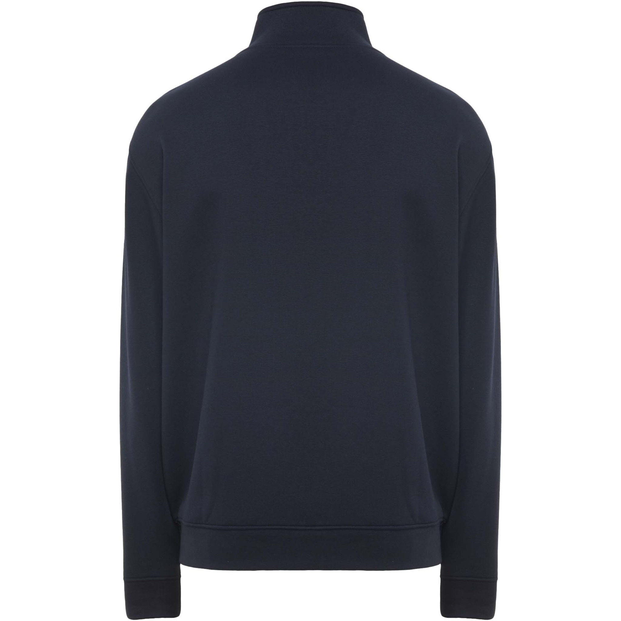 High collar sweater with matching zip. Matching inner collar with reinforced covered seams. 1x1 ribbed fabric in cuffs and waist. Removable label. The male model is 185 cm and is wearing size L, and the female model is 168 cm and is wearing size S.