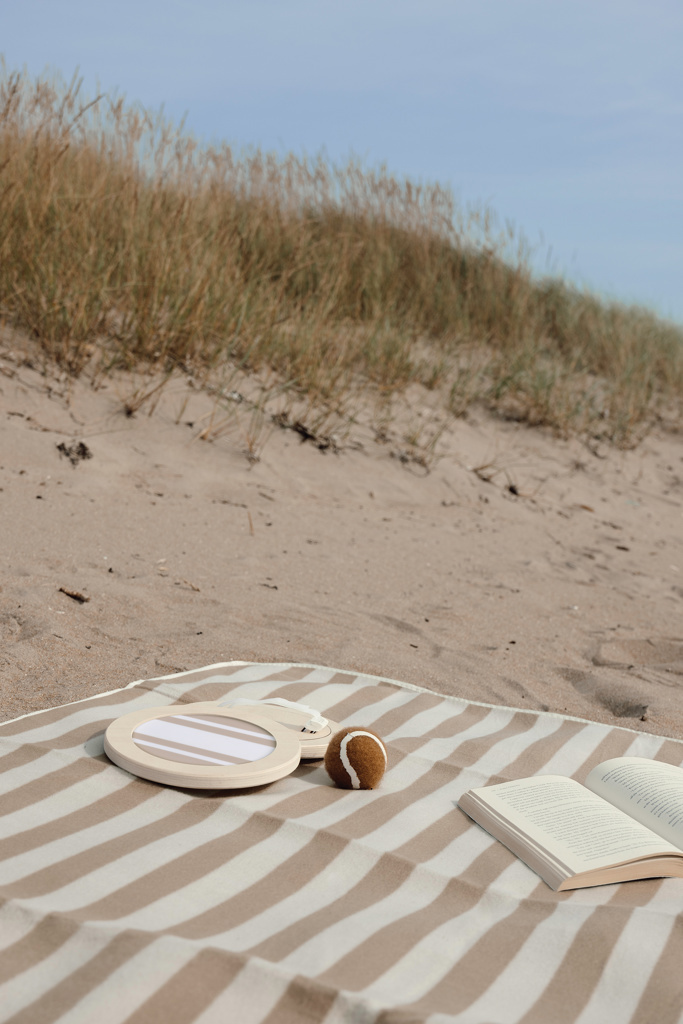 This is the ideal outdoor game to bring to the beach or park. It includes one ball and two velcro catchers, crafted from FSC® certified plywood. The design is sporty yet refined, featuring a two-tone striped pattern on the catchers and a matching brown ball. The game is conveniently packed in a canvas bag with a mesh back making it easy to bring along. Instruction leaflet is included.