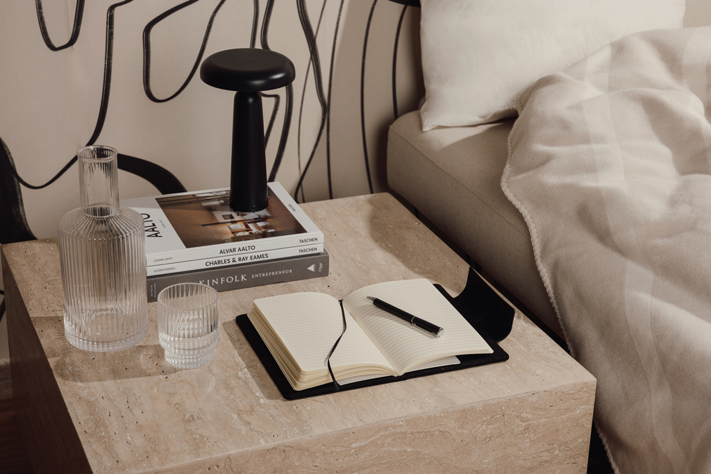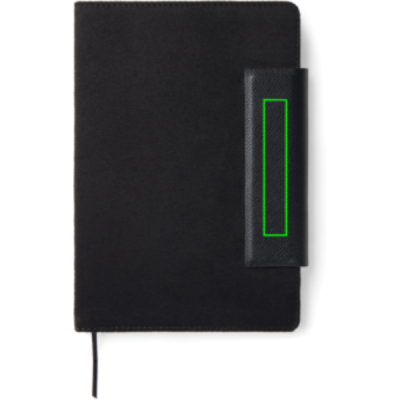 A stylish A5 notebook consisting of 160 lined pages (80 sheets). It is the perfect accessory to bring to meetings, keeping your notes organised in style. Marlow notebook combines timeless design with recycled faux leather, PU details and recycled paper. The notebook is equipped with a practical and stylish magnetic closure. Certified by GRS (Global Recycled Standard), GRS certification guarantees that the entire supply chain of the recycled materials is certified. The total recycled content is based on the overall product weight. This product contains 50% GRS certified recycled paper and 6% GRS certified recycled polyester.