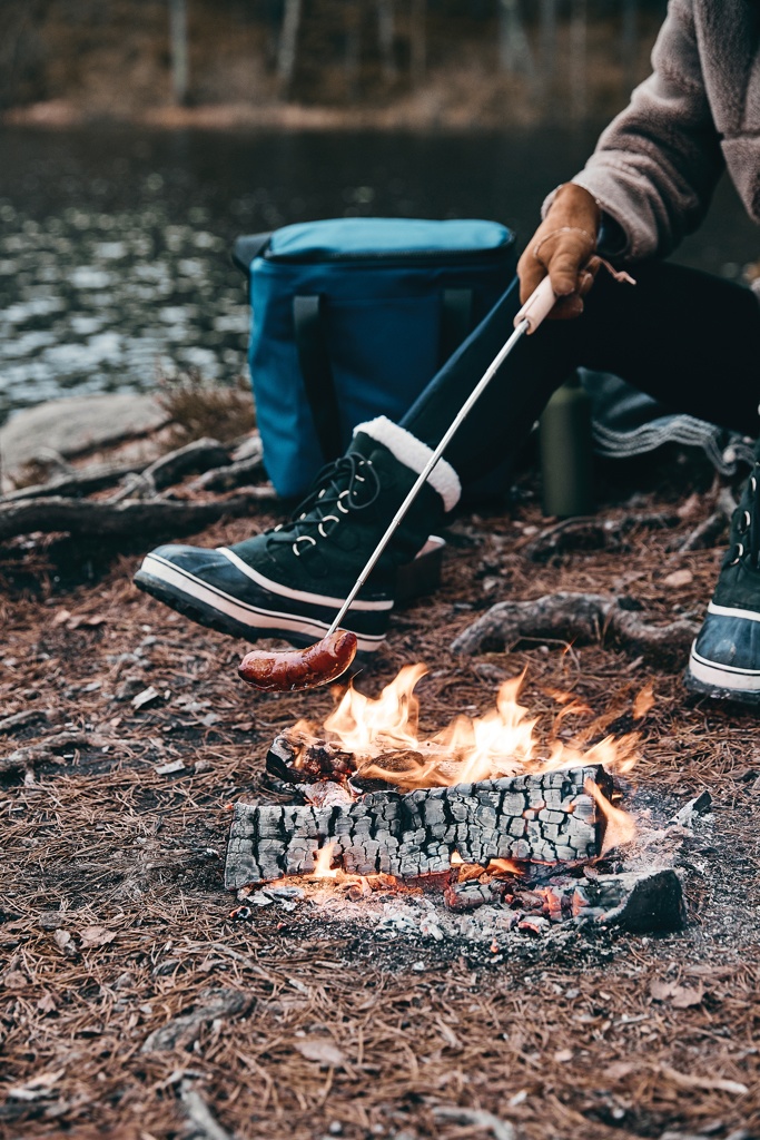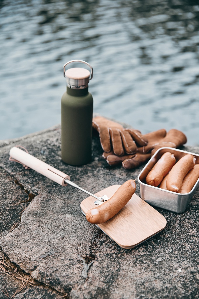 The grill stick is perfect for use over an open fire. The grill stick can be extended by means of a telescopic handle. Barbed fork and wooden handle. The barbs of the fork are designed so that what you are grilling is firmly attached to the stick, preventing food from getting into the grill or fire. Practical leather cord for hanging up. Extended length: approx. 70 cm.