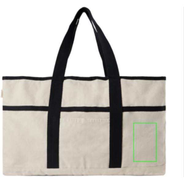 Hit the beach in style with this generous beach bag. Its spacious design, complemented by a towel holder at one side, makes it perfect for beach outings or picnics. The interior features a pocket to keep your valuables safe and secure. Crafted from 500 gsm recycled canvas. The canvas remains undyed and unbleached, eliminating any environmental impact from chemicals. Crafted from 70% recycled cotton and 30% recycled polyester, this bag reinforces our dedication to responsible sourcing. It also features the AWARE™ tracer technology, validating the genuine use of recycled materials. 2% of the proceeds of each product sold will be donated to Water.org.