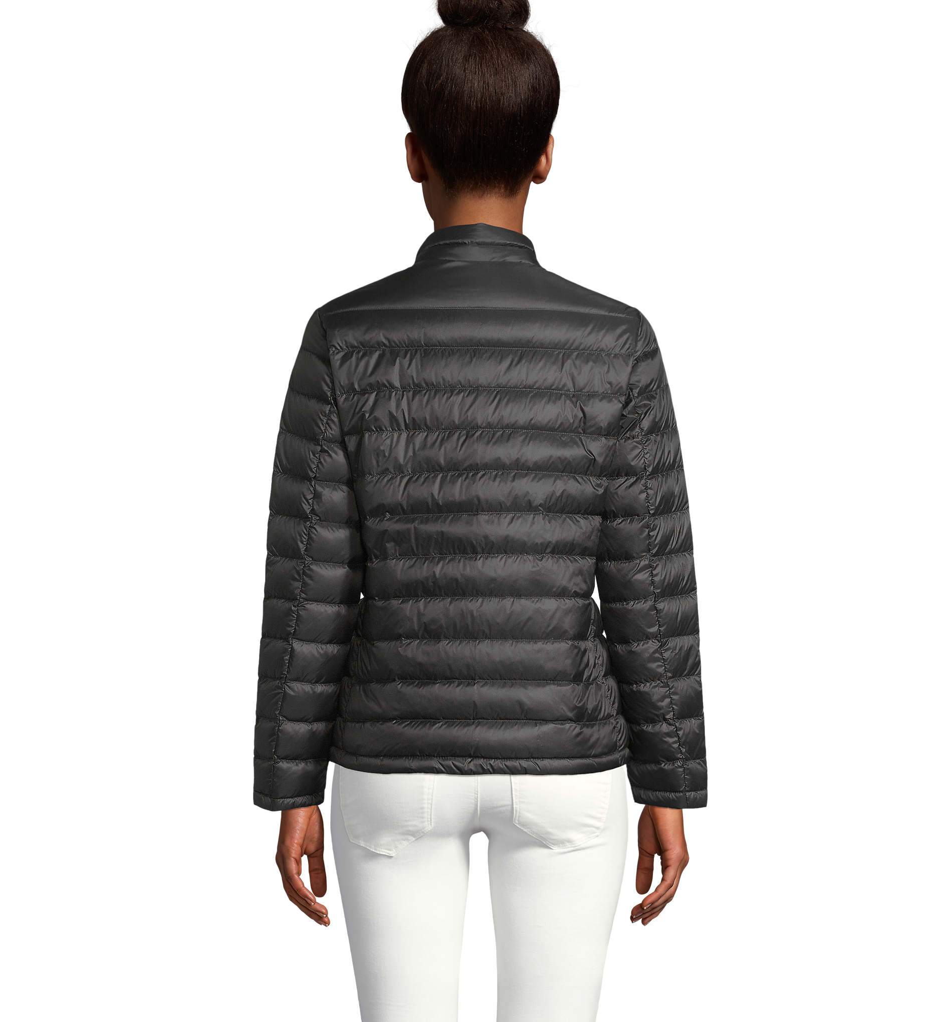 SOL'S WILSON WOMEN, WOMEN'S LIGHTWEIGHT DOWN JACKET, outer fabric and lining: 100% polyamide, padding (please note that we are in the process of transitioning from stock): 90% down and 10% feather until stock lasts. Then transition to 60% Sorona 40% recycled polyester. POLYAMIDE 380T, zip opening, 2 front zip pockets, 2 inside pockets, small high collar, close-fitting cut, in bag folding system with stoppers. About sizes matching, please refer to the size chart in the product documentation section.