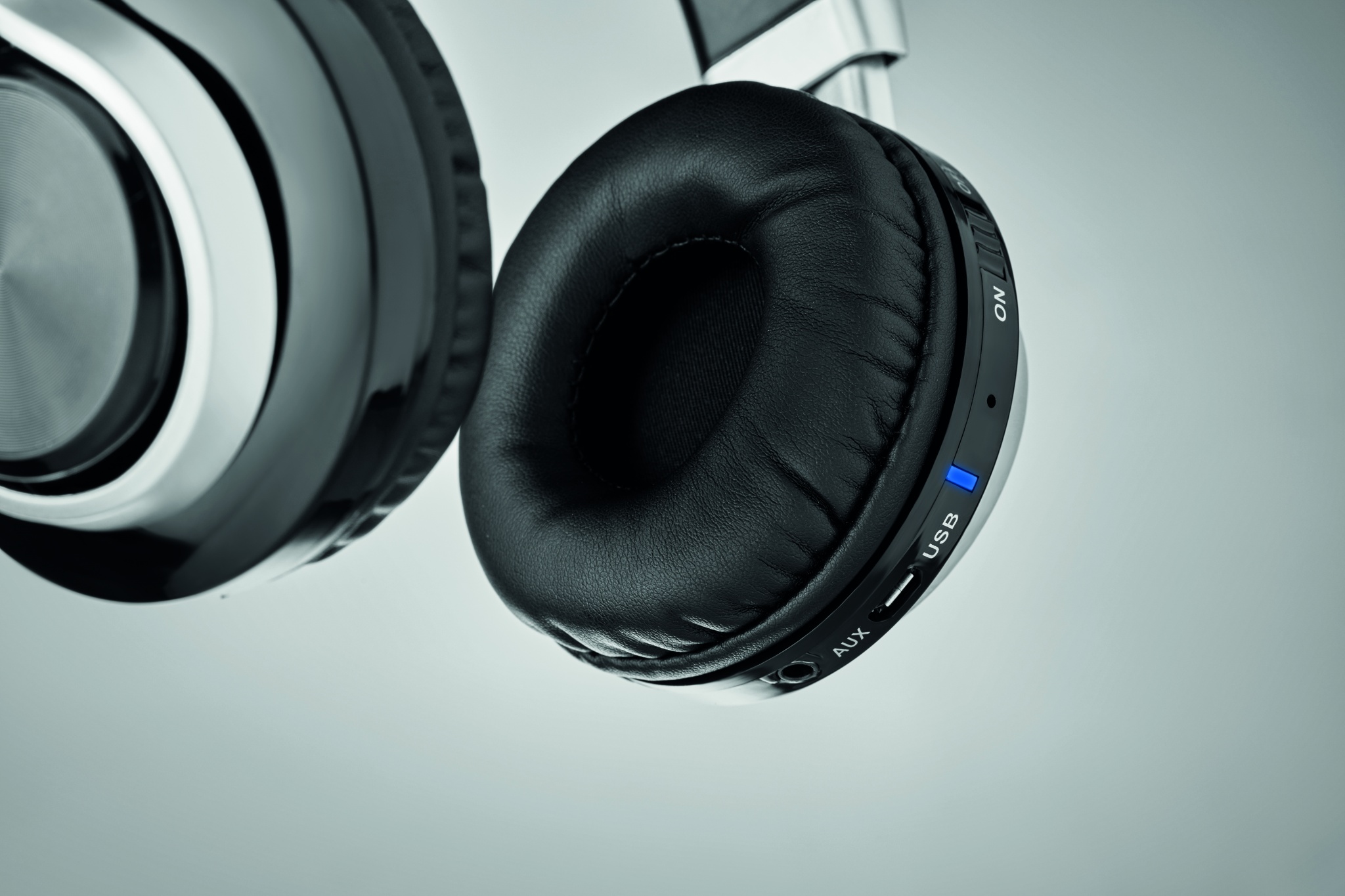 5.0 wireless headphones in ABS. Rechargeable Li-Pol battery 300 mAh. Hands free function. Playing time approx. 6 hours. Includes jack plug cable and micro UBS charging cable. Operating range: 10m.