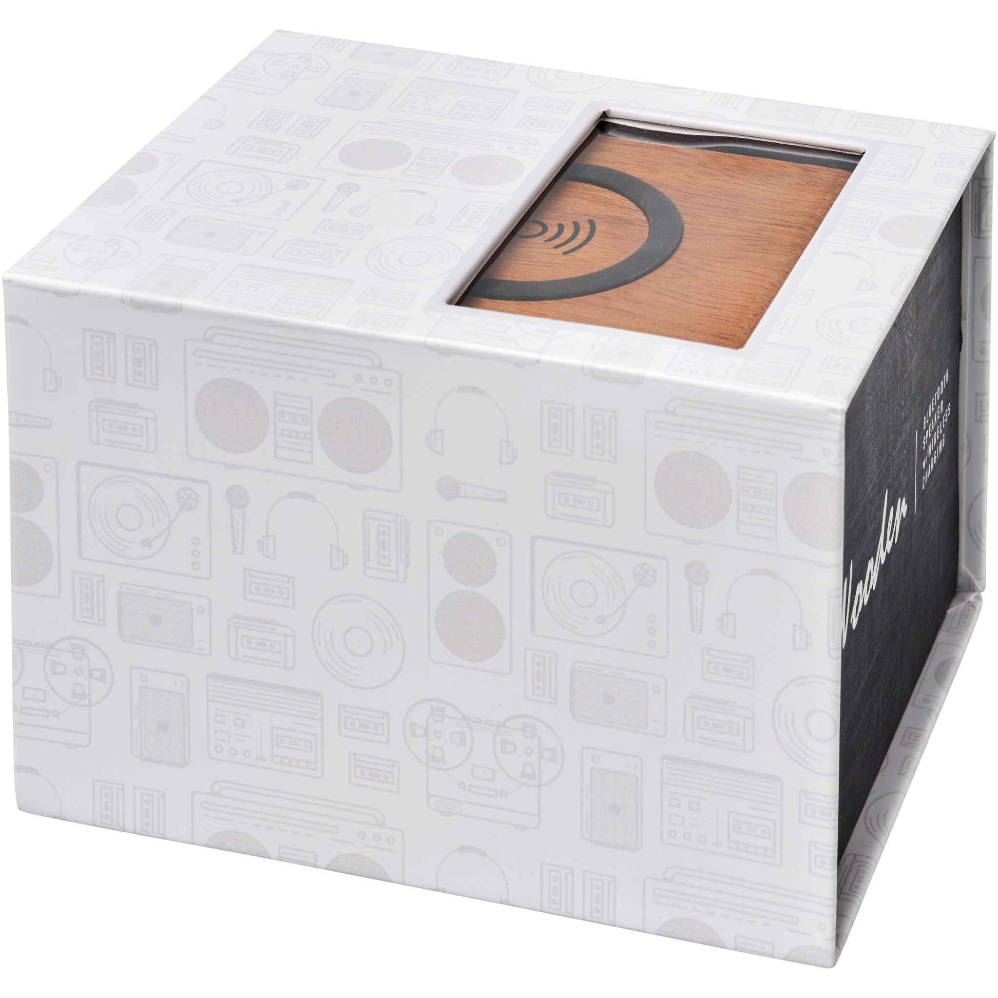 The ultimate tech piece. The Wooden Bluetooth® speaker is perfect for the office or home. The 3 Watt output of the speaker produces crystal clear sound. Plus the top part of the speaker is a wireless charging pad. It’s capable of charging any wireless charging compatible device. The built-in 1200 mAh battery will keep music playing for over 6 hours. Built-in music control and microphone for hands-free operation. Bluetooth® working range is 10 meters (33ft). Bluetooth® version 4.2. Made from real wood. Therefore the appearance of each piece may appear slightly different. Comes in a premium Avenue gift box.