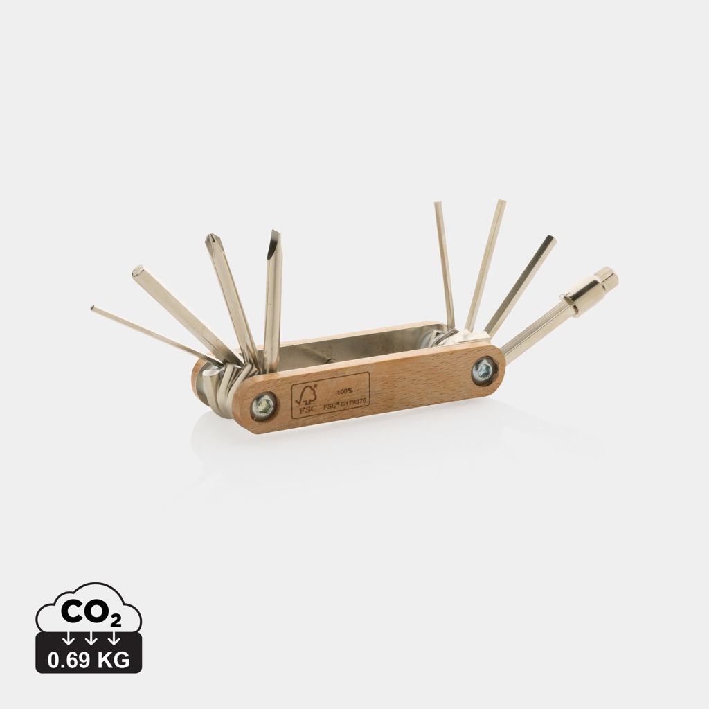 HEX tool made with FSC 100% beech wood and high hardness and corrosion resistant carbon steel (#45). Rockwell hardness 40-45. The item comes with 9 functions: Allen key 5.5mm; Allen key 2mm; Allen key 2.5mm; Allen key 3mm; Allen key 4mm; Allen key 5mm; Allen key 6mm; Philips screwdriver; Flat screwdriver. Packed in FSC mix kraft box.