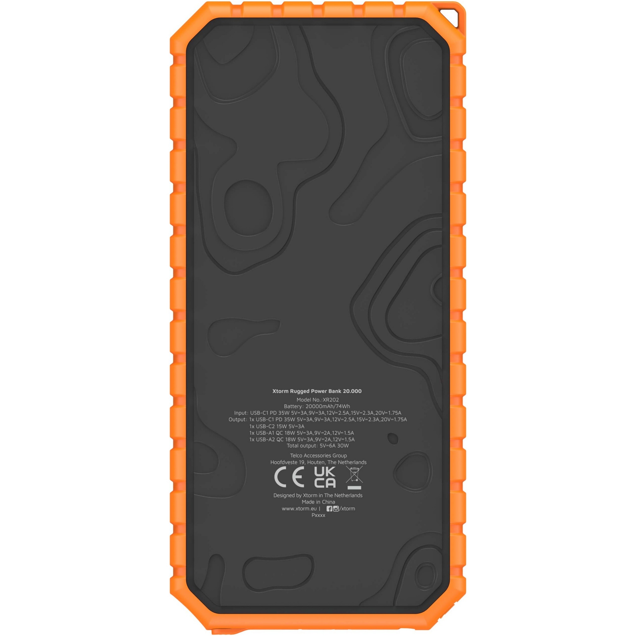 Xtorm XR202 Xtreme 20.000 mAh 35W QC3.0 waterproof rugged power bank with torch, Solid black / Orange