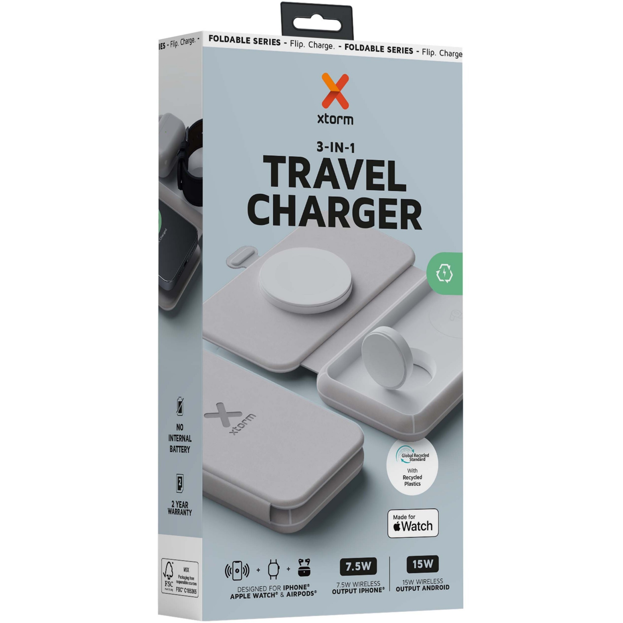 Xtorm XWF31 15W foldable 3-in-1 wireless travel charger, Grey