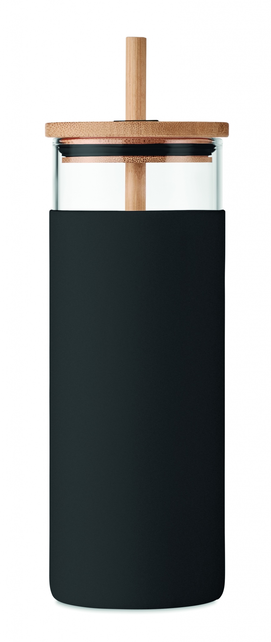 450 ml bambusest kaane ja kõrrega joogitops, Must