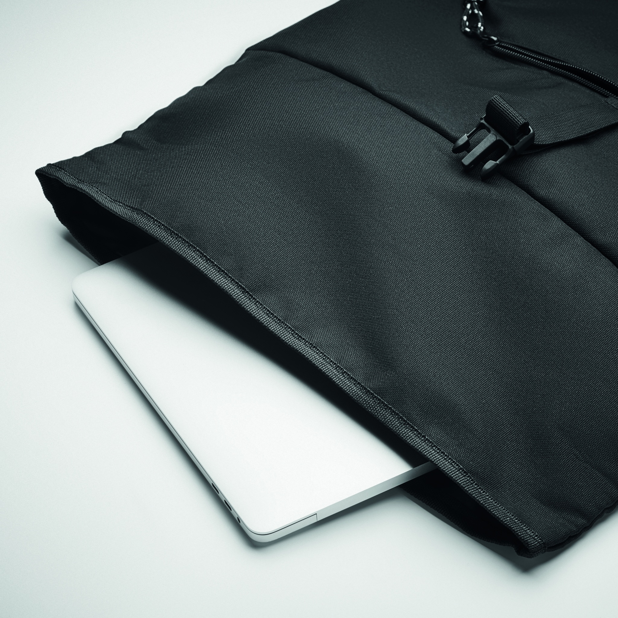 Rolltop seljakott 600D RPET polüestrist polsterdatud selja- ja põhjatugevdusega. Tõmblukuga esitasku. Vooder on 210D RPET.