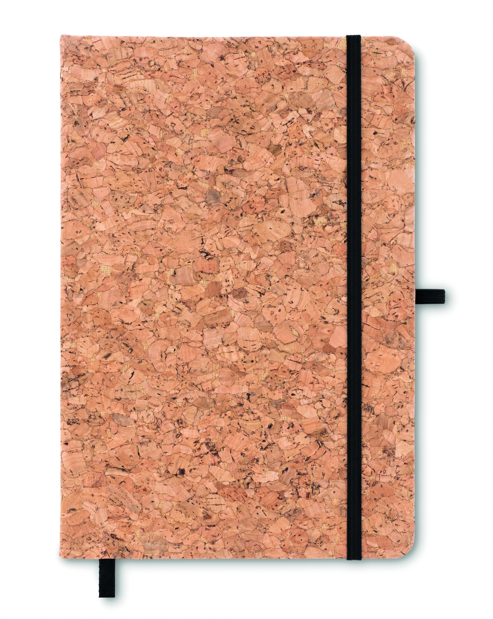 Kõva korgikaanega A5 märkmik. Casebound. 192 jooneline paber (96 lehte). Elastne sulgemisrihm, lindiga järjehoidja ja elastne pliiatsihoidja. Kork on 100% looduslik materjal. Selle struktuurse olemuse ja pinna poorsuse tõttu võib lõpptulemus eseme kohta esineda kõrvalekaldeid.