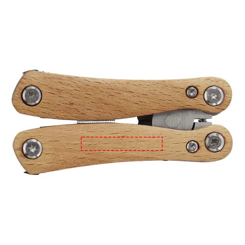 Tugev ja vastupidav kompaktne kõrgkvaliteetsest roostevabast terasest multitööriist, mille käepidemed on valmistatud pöögipuidust. See on kohustuslik tööriist igale skaudile, käepärasele mehele ja vabaõhuhuvilisele. Sisaldab 12 funktsiooni: suured tangid, tavalised tangid, traadilõikur, sakiline tera, pudeli-/purgiavaja, lame kruvikeeraja, keskmise lame kruvikeeraja, väike nuga, philipsi kruvikeeraja, keskmine nuga ja viil ning viilipuhastaja. Kasutatav pöögipuit on pärit jätkusuutlikest, keskkonna- ja sotsiaalselt vastutustundlikest allikatest. Mõõdud avatuna 11 x 6 cm ja suletuna 7,2 x 3,4 cm. Kaasas kasutusjuhend ja see on pakendatud taaskasutatud papist kinkekarpi, mille suurus on 9,5 x 5,5 x 2,5 cm. Lasergraveerimine on soovitatav jätkusuutliku kaunistuse võimalusena.