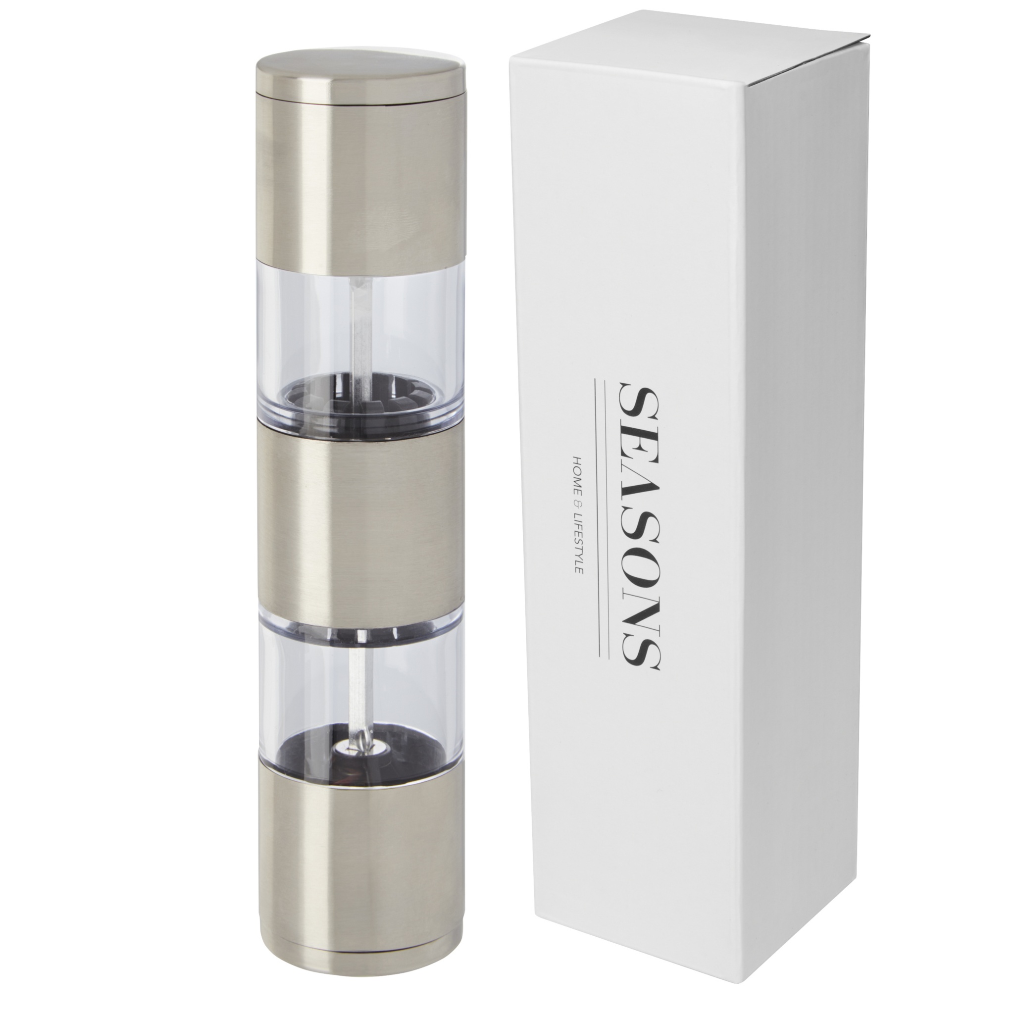 Kahepoolne veski, mille üks ots soola ja teine pipra jaoks. Pipar ja sool ei kuulu komplekti.