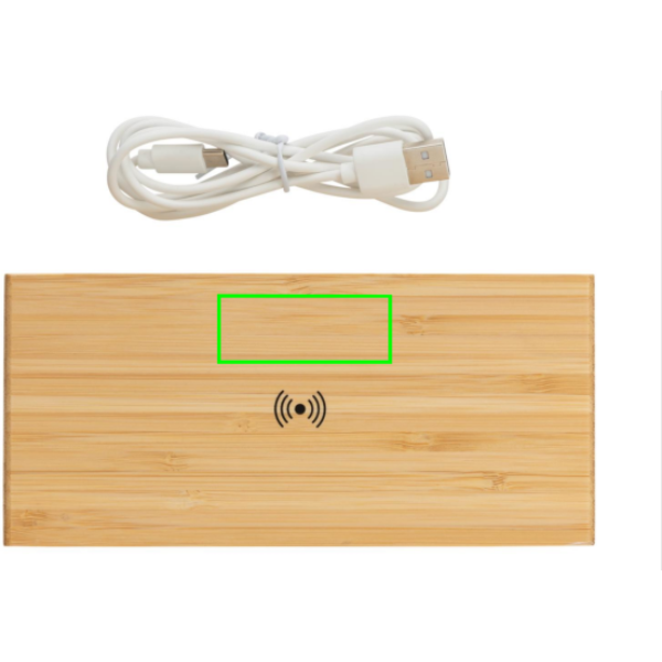 Logo trade meene pilt: Bambusest äratuskell 5W juhtmevaba laadijaga