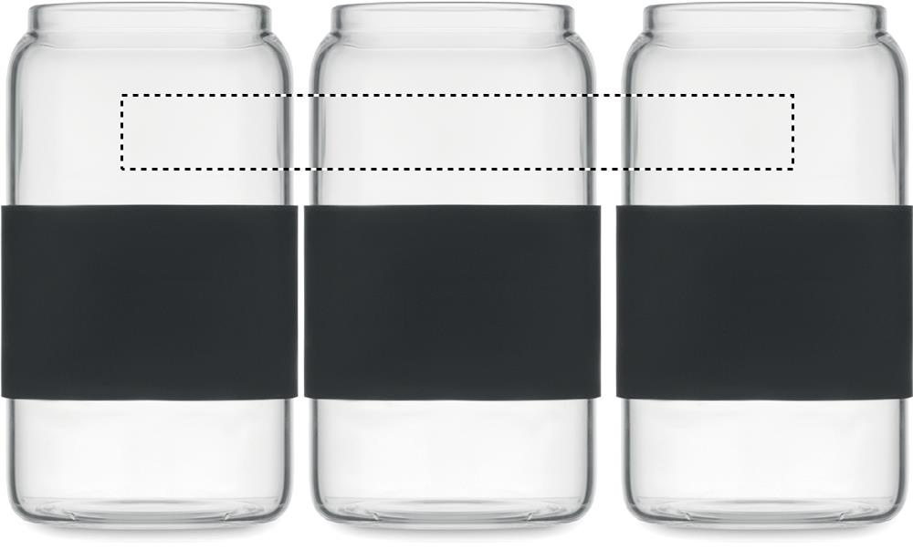 Must kõrgborosilikaatklaasist joogitops silikoonkaane ja käepidemega. Borosilikaatklaasist joogikõrs. Mahutavus: 550 ml.