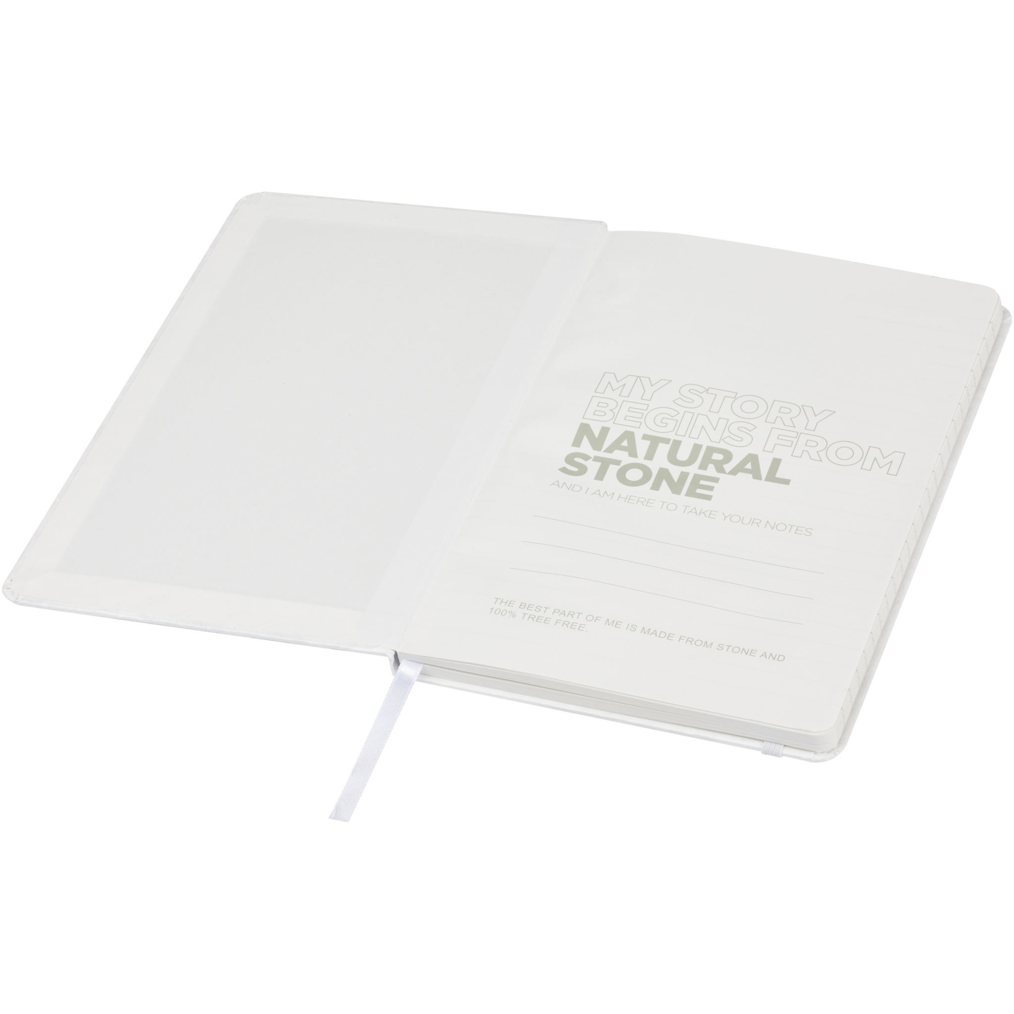 A5 suuruses rebenemiskindel märkmik kivist siselehtedega. Kivipaber on 100% puuvaba ja tootmisprotsess kasutab vähem energiat võrreldes taaskasutatud või uue paberimassi paberiga. See on veekindel, nii et mahaloksunud vedelikud saab kergesti ära pühkida. Sisaldab värvile vastavat paelamarkerit ja elastset riba ning 60 lehte 120 g/m² vooderdatud kivipaberit. Pakitud papist varrukasse.