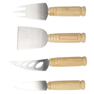 4-osaline bambusest juustukomplekt, mis sisaldab juustulabidat (13,3 x 4,7 cm), 2 juustunuga (13,5 x 2 cm ja 15,3 x 2,5 cm) ja juustukahvel (14 x 3,5 cm). Ergonoomiline käepideme disain, hea suurus ja ümmargune käepide muudavad selle hõlpsasti haaratavaks. Kõigi tööriistade käepidemed on 7 cm pikad ja läbimõõduga 1,9 cm. Mõeldud erinevate kõvade ja pehmete juustude kerimiseks, lõikamiseks, viilutamiseks, raseerimiseks ja puistamiseks. Need on kerged ja ruumisäästlikud, neid on lihtne köögikapis hoiustada ning sobivad ideaalselt peoalustele või söögilaudadele. Kasutatav bambus on hangitud ja toodetud säästvaid standardeid järgides.